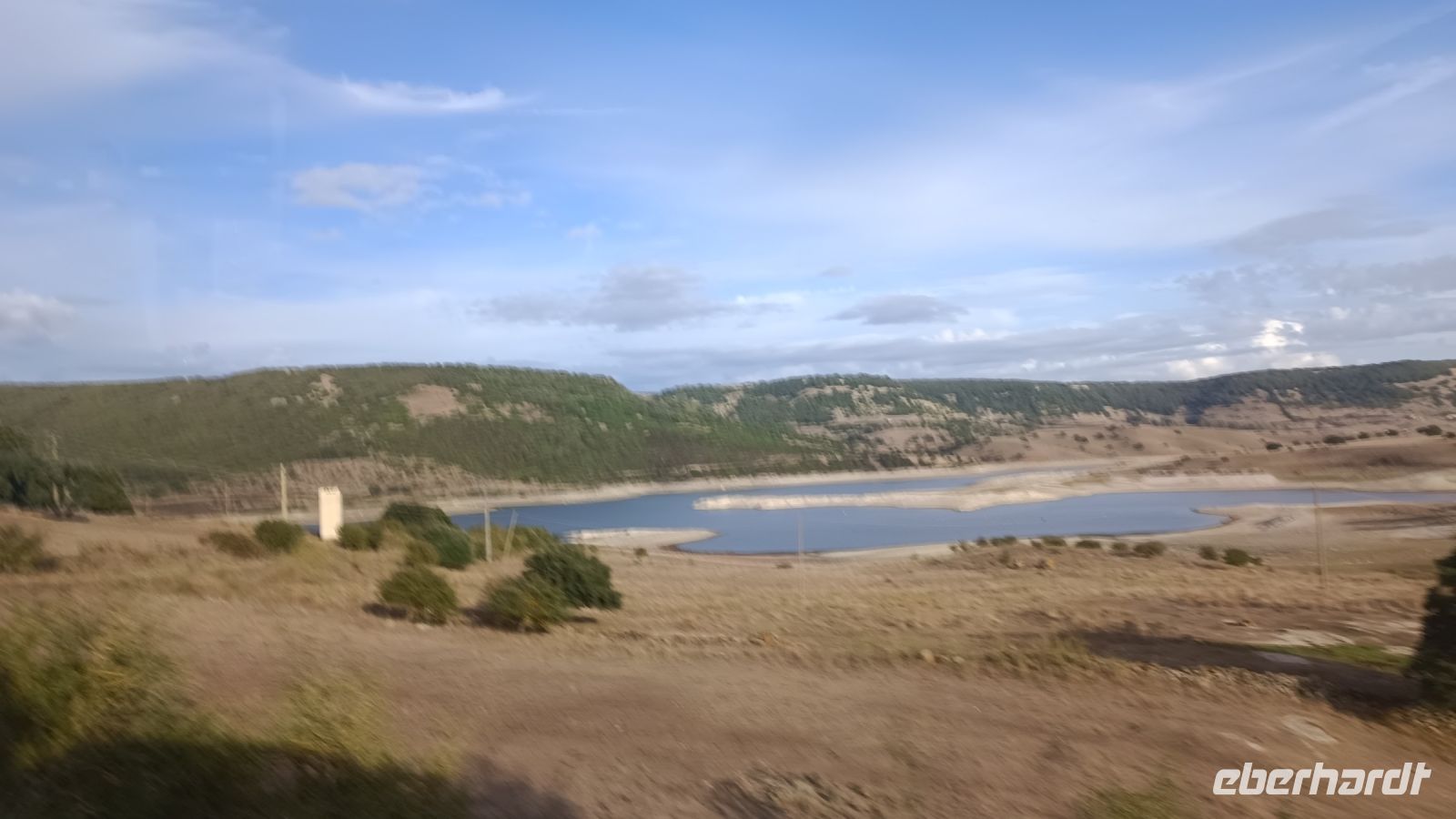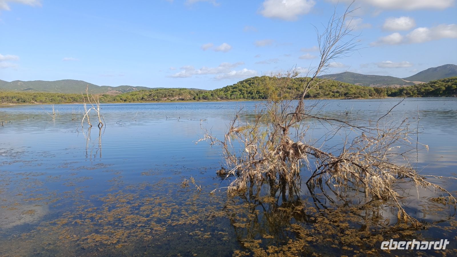 In der Ferne erkannte man den künstlich angelegten Stausee Lago di Liscia zur Wasserversorgung des ehemaligen Hirtendorfes Arzachena, das durch den reichen Aga Khan in den 1960iger Jahren zur modernen Stadt avanzierte. Sardinien hat bis auf den Baratzsee keinen einzigen natürlichen Süßwassersee.