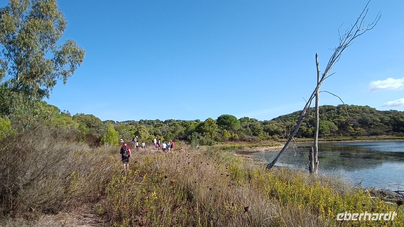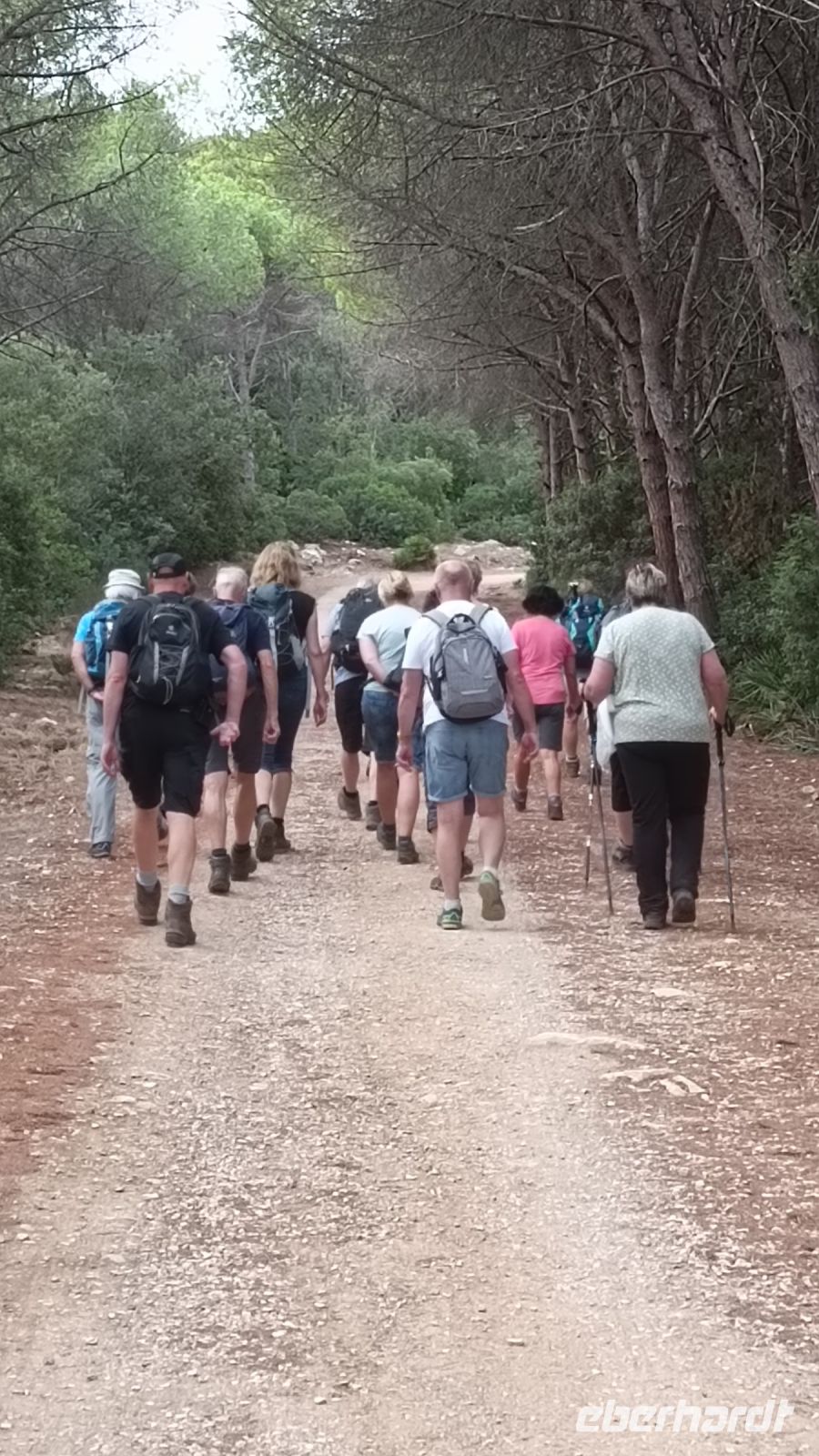 Auf dem Rückweg zum Parkplatz konnten wir anhand der vielen Schautafeln unsere biologischen Kenntnisse aufbessern. Die Pinie, die uns den ganzen Weg entlang begleitete, wurde irgendwann einmal auf die Insel eingeführt. Sie ist keine einheimische Pflanze. Stein- und Korkeichen, und Bergahorn und Olivenbäume sind die einheimischen Sorten.