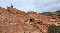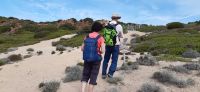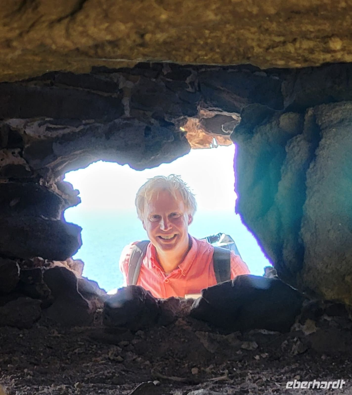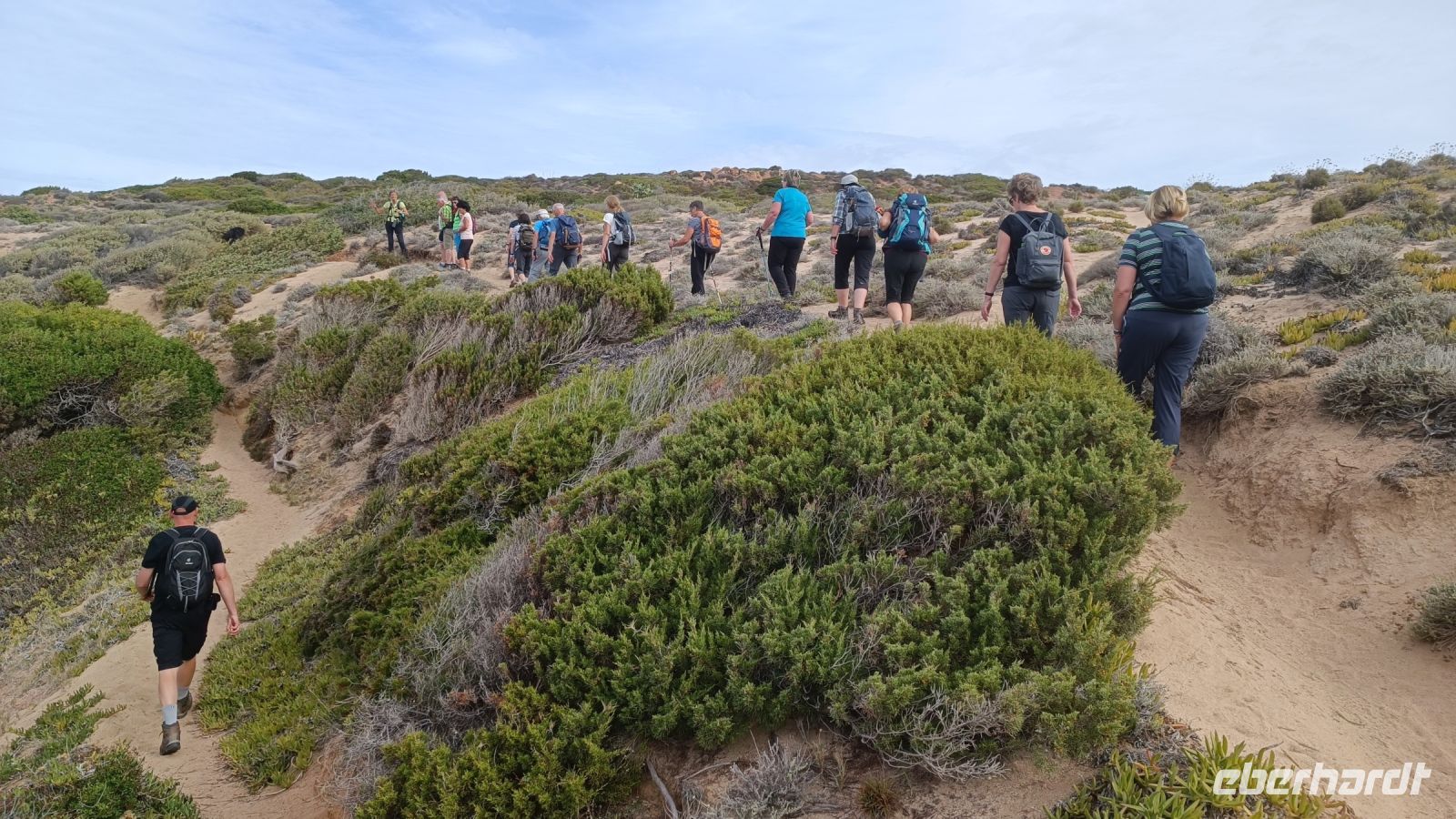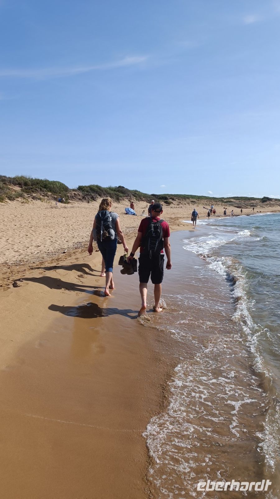Der Weg führte uns über so manchen Felsen, wo man auch mal die Hände zu Hilfe nehmen musste, bevor wir einen herrlichen Ausblick auf den Strand von Punta Argentina und Tenzisos hatten.