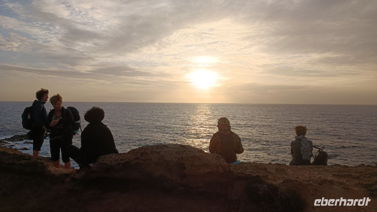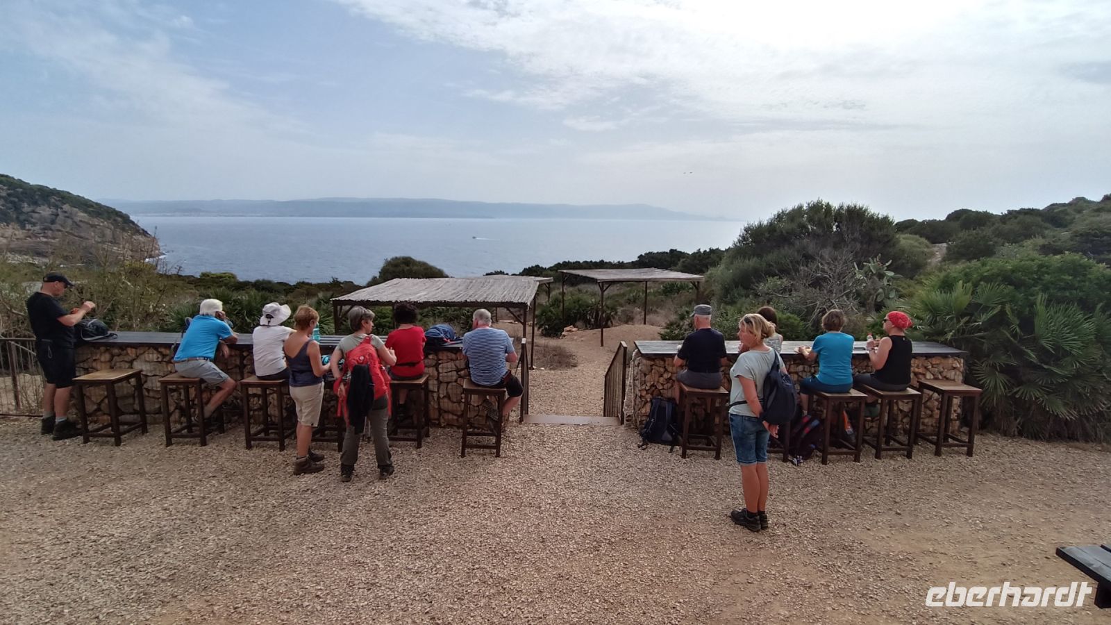 Die Sonne schien. Um einen kleinen Tisch herum saß der Rest der Gruppe. Kaffee, Prosecco oder ein Bier in der Hand, die Füße auf die Mauer gelegt, der Blick übers aufgeschäumte Meer hinüber nach Alghero und in Gedanken versunken an die schönen Erlebnisse miteinander. Jeder lobte unsere wirklich außergewöhnliche Wandergruppe und so mancher hätte noch gerne um Tage verlängert.