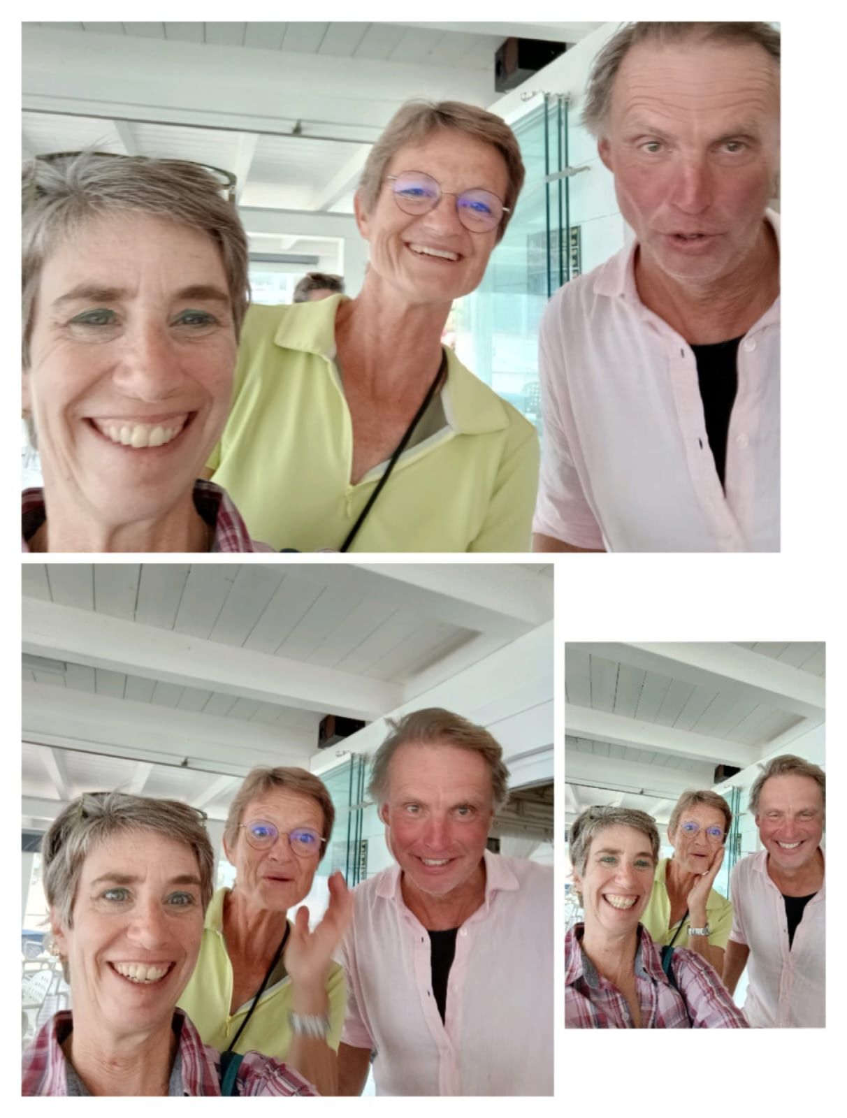 Ein bewegender und emotionaler Moment auf dem Weg nach Olbia war, als uns eine Whatsapp erreichte. Darauf ein Bild der 4 Wanderfreunde als sie den Flughafen in Olbia erreichten und ein Abschiedslied, live gesungen von einer Dame. Dieses Lied „Wir sagen euch auf Wiedersehn“ wurde kurz vor unserer Ankunft in Olbia über Lautsprecher im Bus allen vorgespielt.