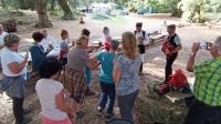 Bevor wir in den Genuß ihrer Spezialitäten kamen, gab es noch einen kleinen Spaziergang durch den Weinberg hinüber zum Olivenhain und wieder zurück.