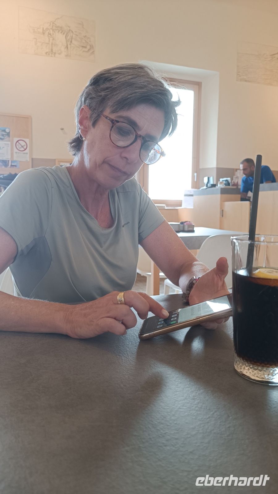 Leider musste uns Antonio verlassen, so bekamen wir heute eine neue Wanderführerin mit dem schönen Namen Fiammeta, was „Kleines Flämmchen“ bedeutet. Leicht zu merken ist der Name mit der bairischen Eselsbrücke 4 Meta, (Vier Meter)