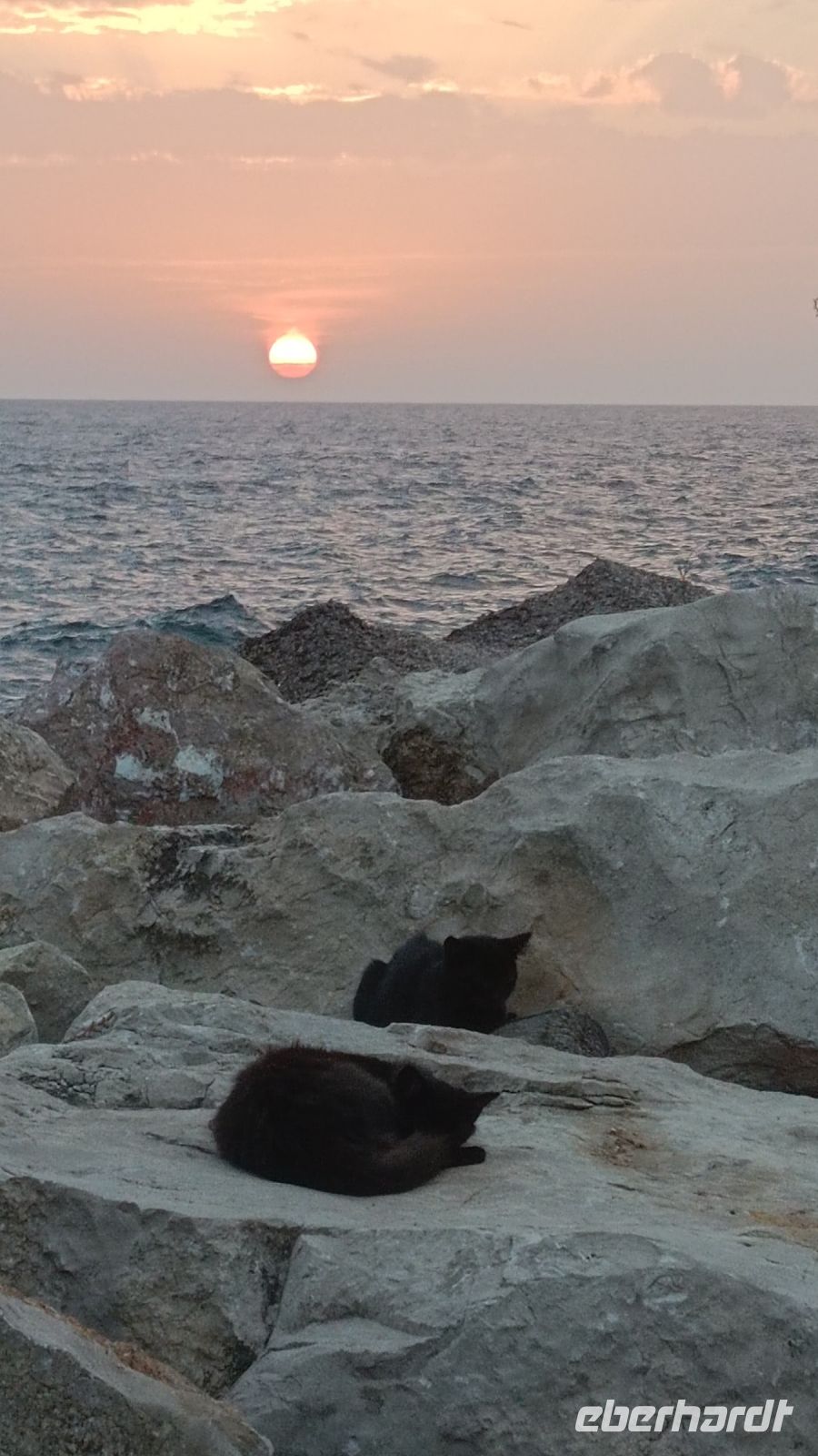 Von allen als glücklichen Tag empfunden, bot sich vor dem Abendessen noch die Erfrischung im Meer an, was dankbar angenommen wurde.