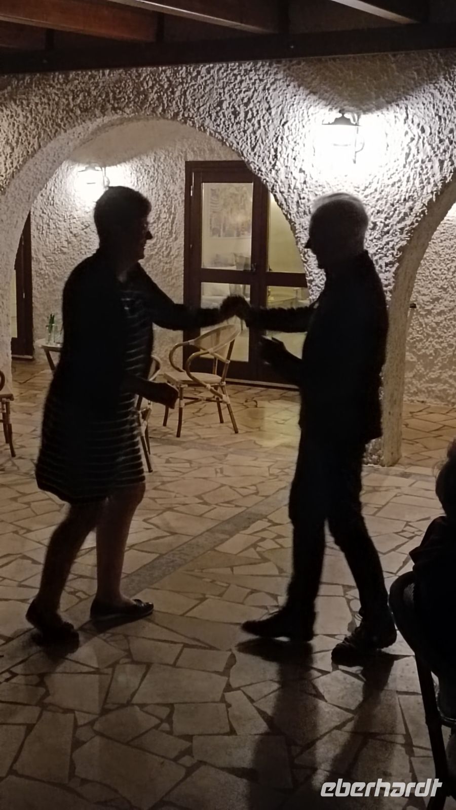 Dieser Abend war ein besonderer Abend. Es wurde viel gelacht und auch getanzt. Aber diesmal nicht mit 4 steifen Holzbeinen sondern mit etwas beweglicheren 2 lebendigen Beinen. Die Profis aus der Gruppe machten dies natürlich perfekt und man konnte mit geübtem Auge schon etwas von Ihnen lernen und gleich in die eigene rhythmische Bewegung mit einfließen lassen. Es gelang nicht immer, zum Leid der Partnerin, aber der Spaß war es wert.