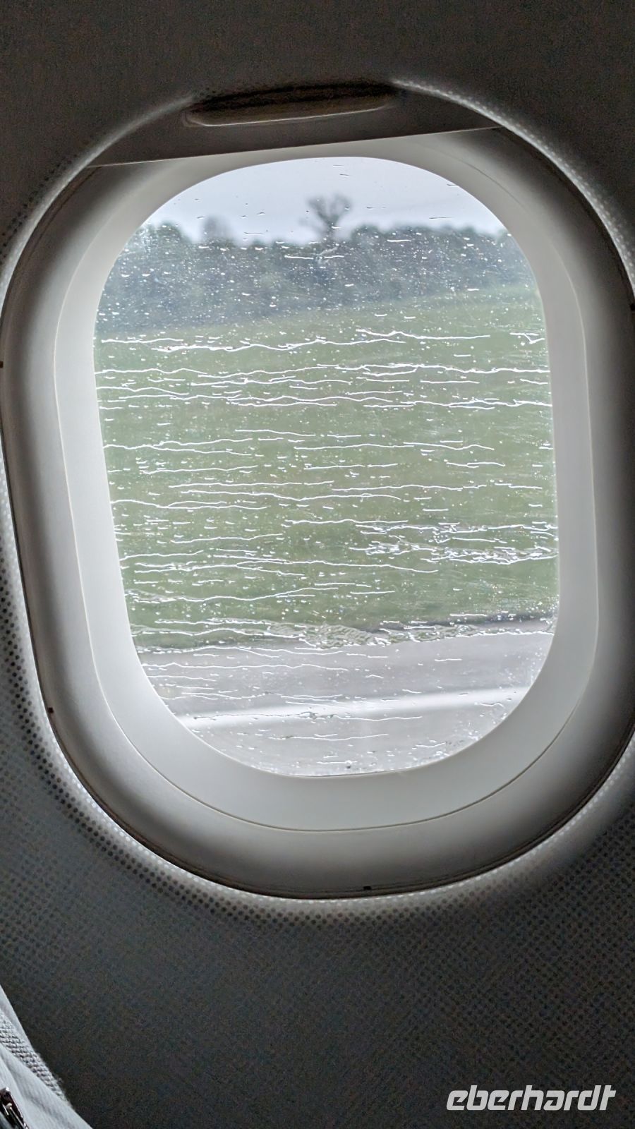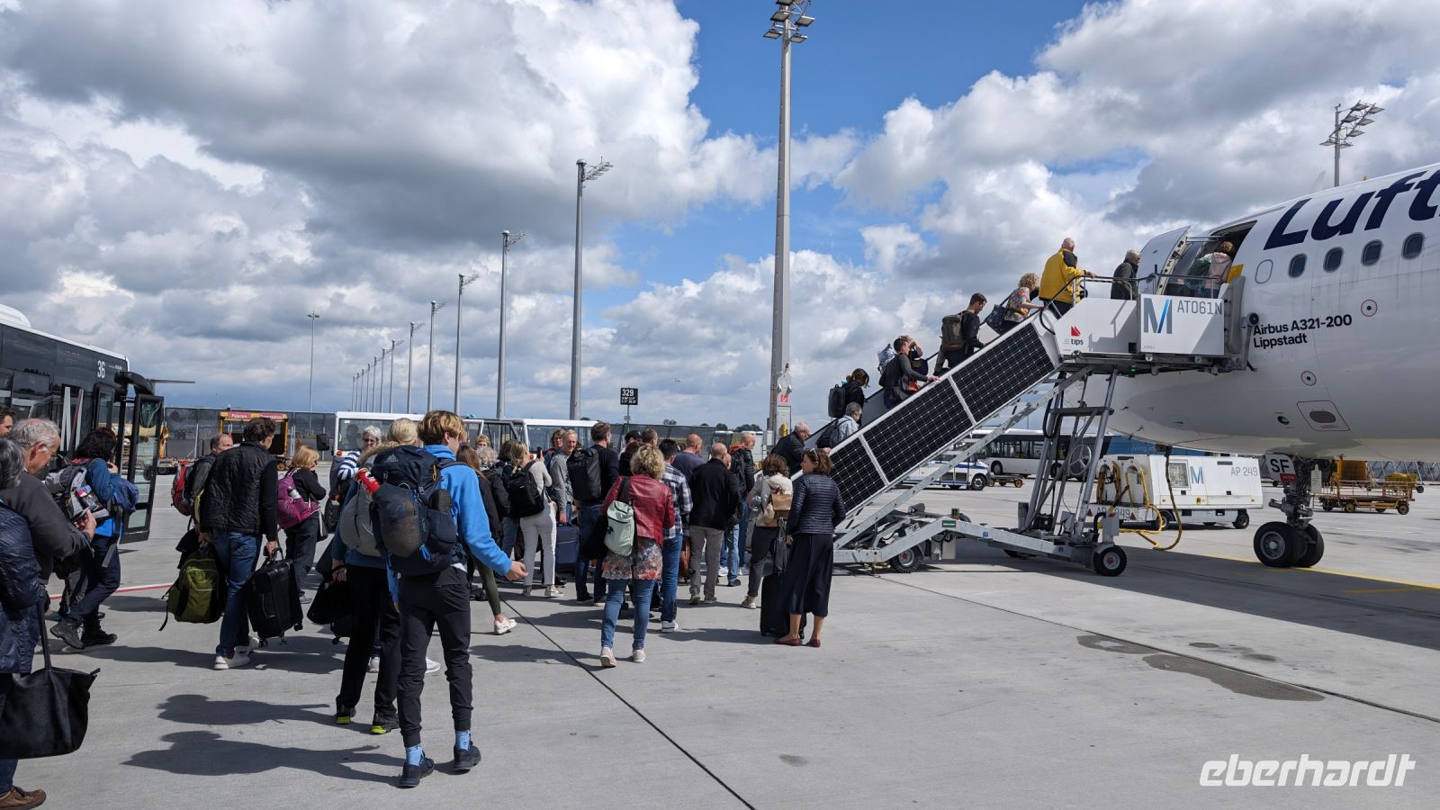 Der Grund des frühen Boardings wurde auch schnell klar, denn ein Bus brachte uns zum Flugzeug, das irgendwo draußen im weiten Flughafengelände stand.