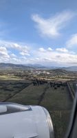 Noch war strahlender Sonnenschein, aber als unser Flugzeug zur Startbahn rollte und auf das Signal zum Start wartete, setzte ein starker Graupelschauer mit Schneefall ein.