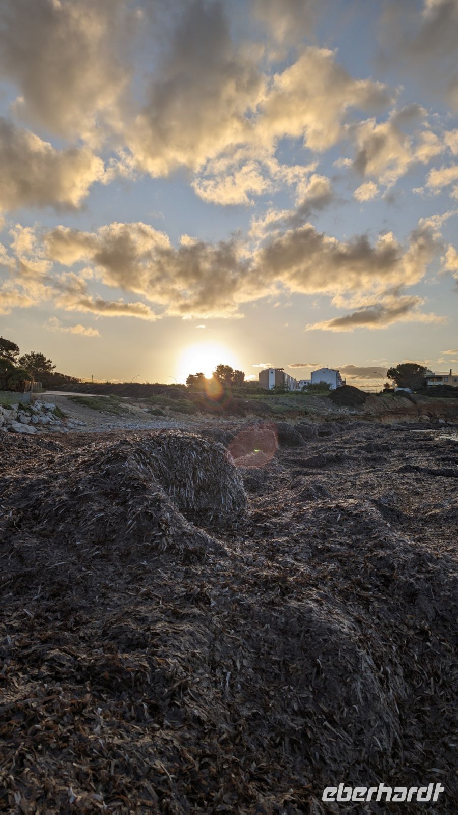 Am Strand, unweit des Sportboothafens wurden Berge von Algen aufgehäuft. Im getrocknet Zustand werden sie später zu Pellets verarbeitet und dann der Energiegewinnung zugeführt. Habt ihr gewußt? Alga bedeutet Müll.