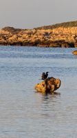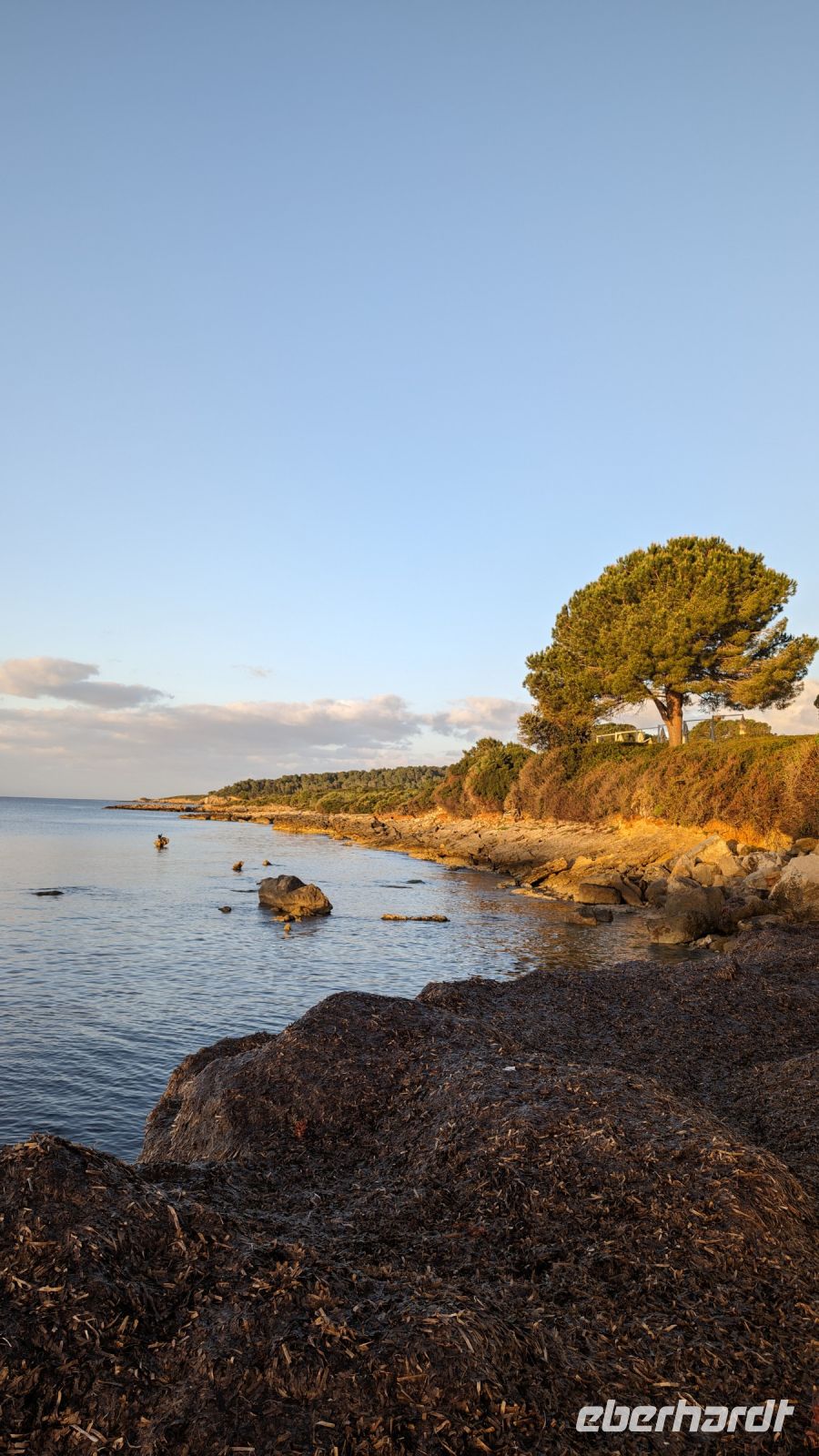 Der nächste Morgen wieder strahlender Sonnenschein und ruhige See. Das Meer spülte wie jede Nacht das Seegras an den Strand und täglich entstanden neue Formen. Zwei Füße stapften wie jeden Morgen durch die Algenberge um sich später im Wasser wieder zu finden. Das Meer ist einfach besser als die Dusche.