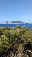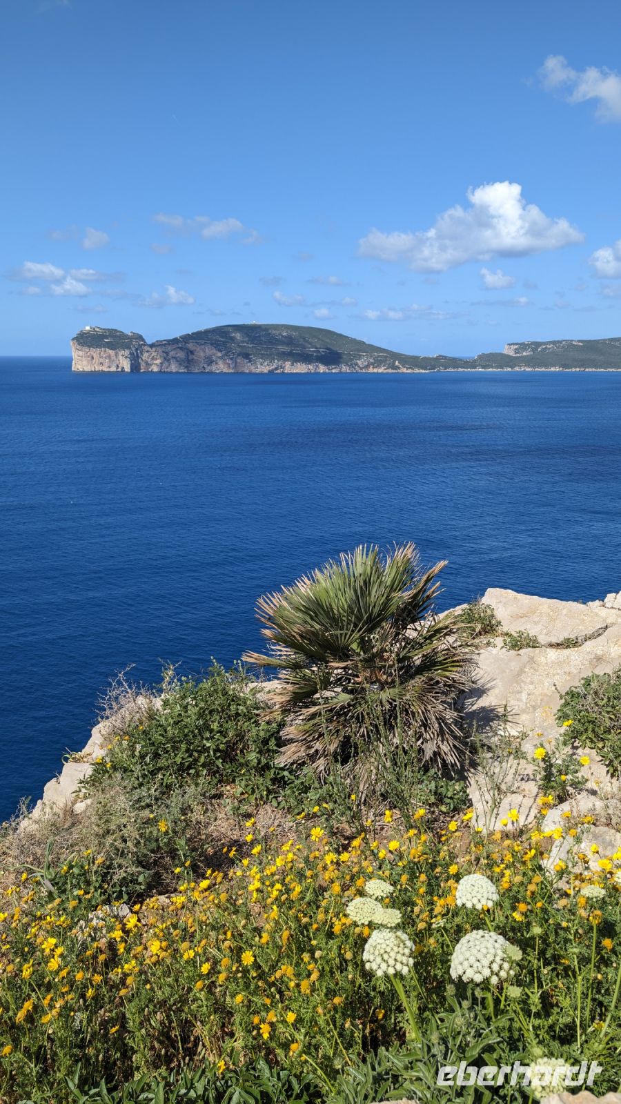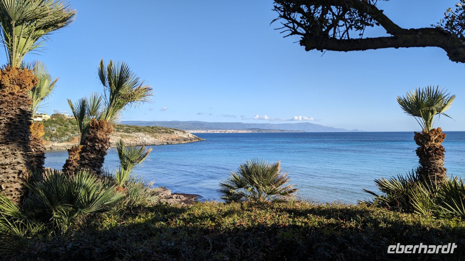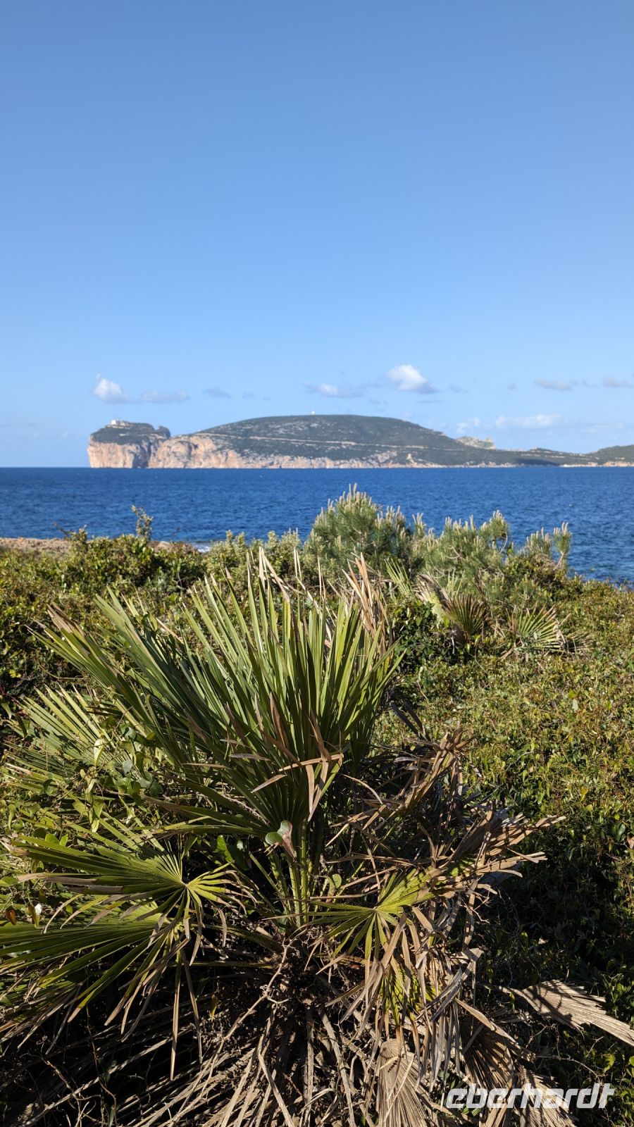 Auf der anderen Seite ging der Blick hinüber zum Punta Giglio, dem Ort der ersten Wanderung und hinein in die Bucht von Porto Conte, einst die berüchtigste Bucht Sardiniens. Unzählige Seeschlachten wurde hier geschlagen. Die Bucht war bekannt unter Seeräubern und Piraten. Handelsschiffe, beladen mit Silbererz aus Argentiera und anderer wertvoller Fracht lichteten hier ihre Anker und fuhren gen Spanien. Ein lohnendes Ziel also für die Freibeuter. Heute sehen nur noch Taucher die Reste der der Schlachten am Meeresgrund.
