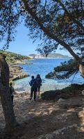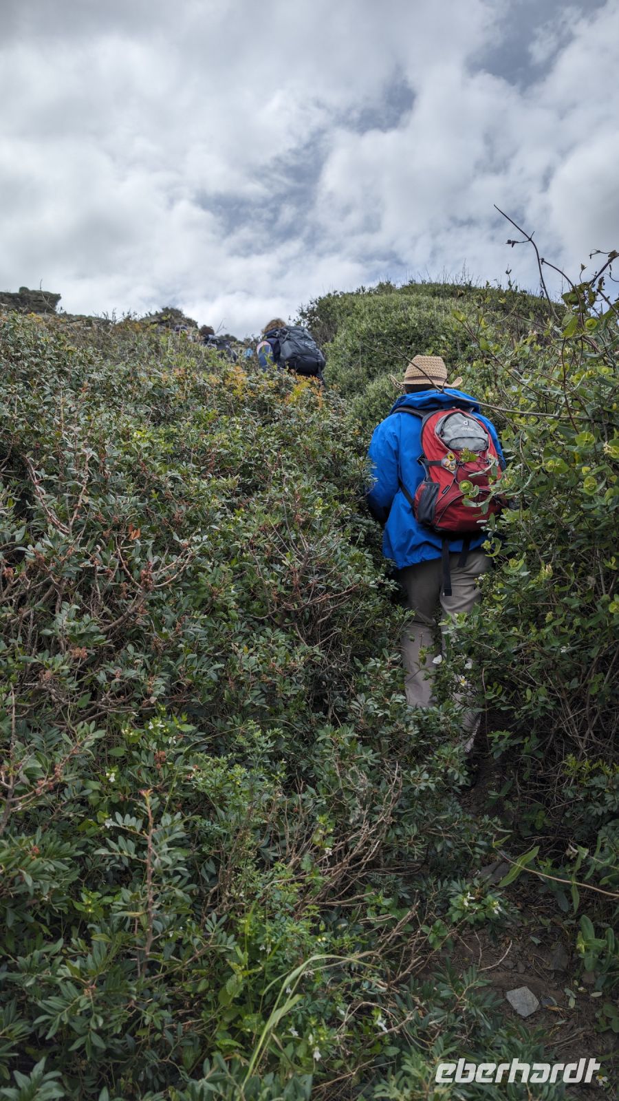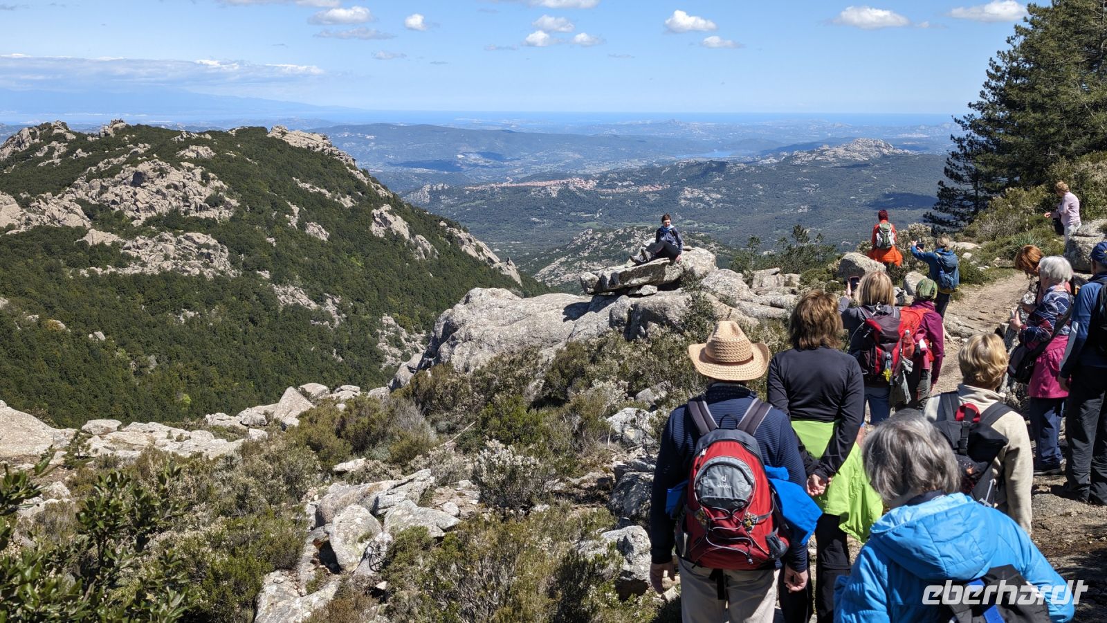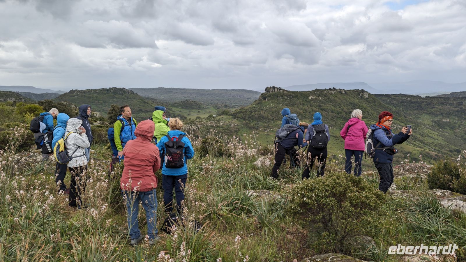 Jetzt wurde der Weg etwas anspruchsvoller. Ein bißchen kraxeln in den Felsen, durch meterhohes Macchiadickicht streifen, schmale Pfade und teils unwegsames Gelände. Die Wanderer nahmens gelassen, wenn man auch so manchen Kratzer durch die Dornen abbekam. Den Humor und die Freude an der Wanderung verlor man deshalb nicht.
