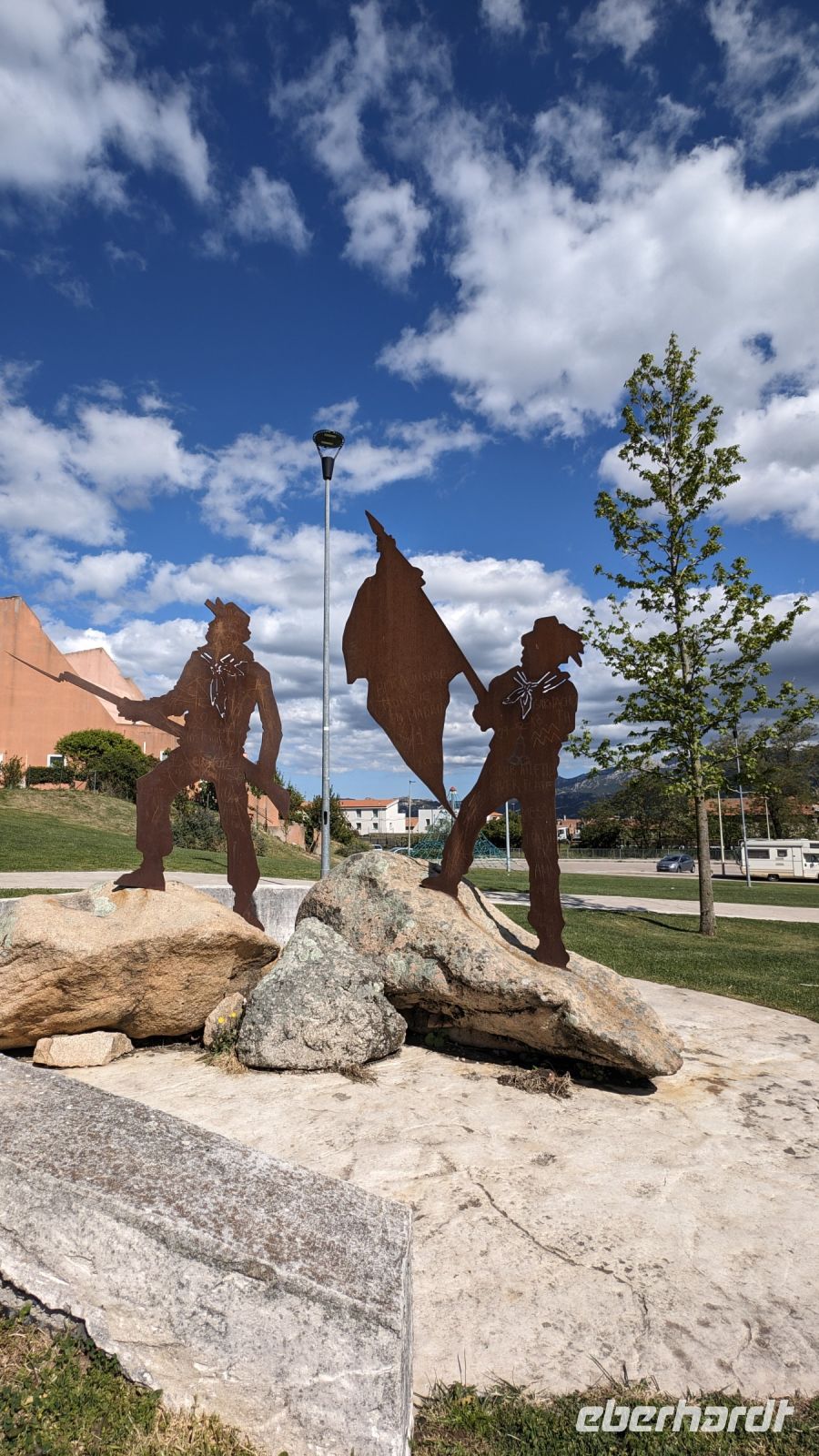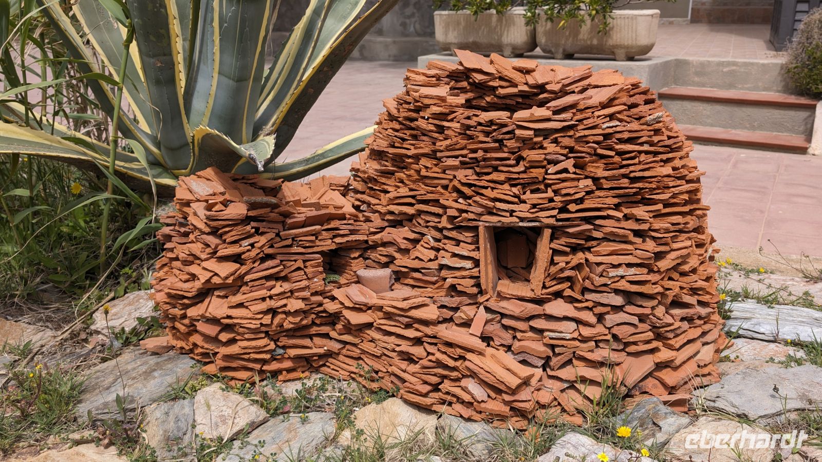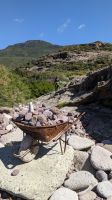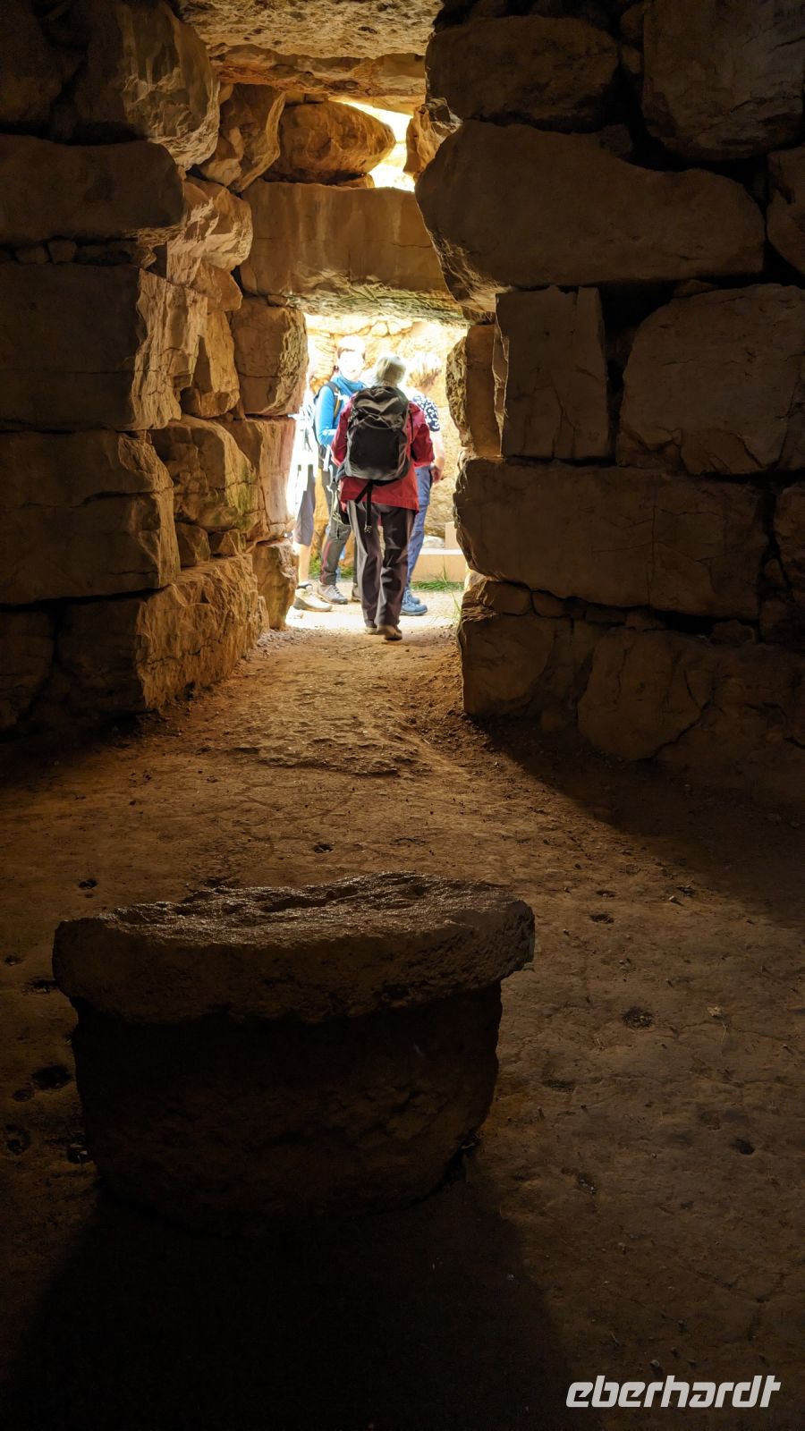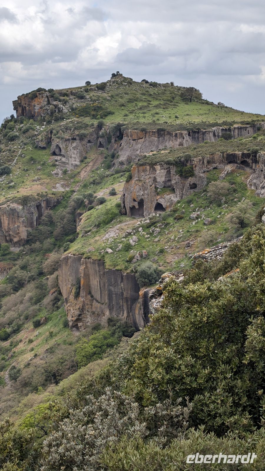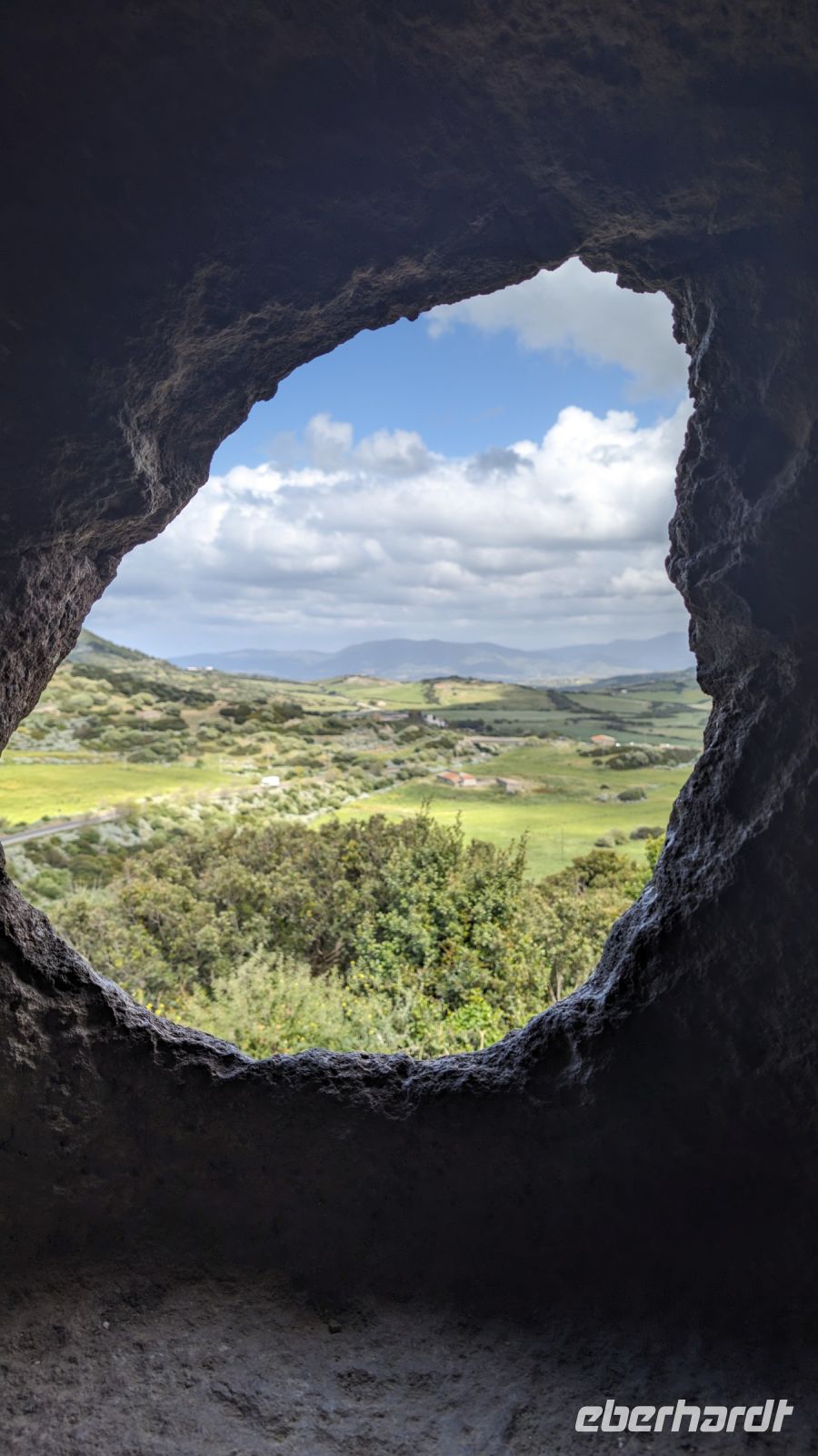Uns gegenüber der Monte Guerra, der „Kriegsberg“. Auf dem Gipfel trutzt eine alte Nuraghe aus jener Zeit und die mächtige Korkeiche darunter könnte viel Geschichten erzählen. Darunter waren zahlreiche Feengräber zu sehen mit deutlichen Spuren der Benutzung. Die Wände geschwärzt vom Rauch der Lagerfeuer, die hier einst brannten.