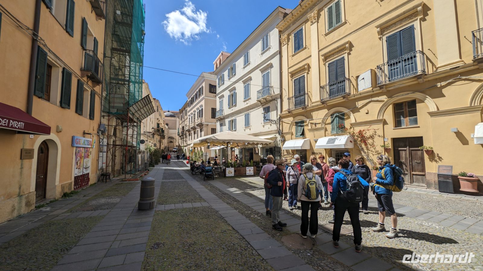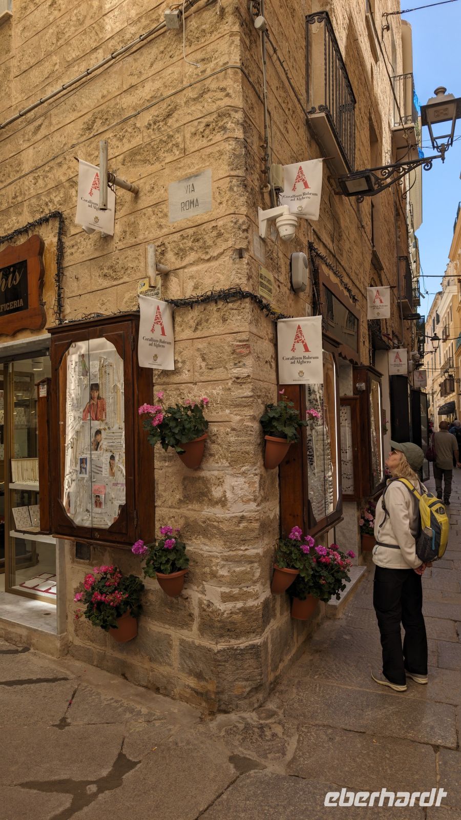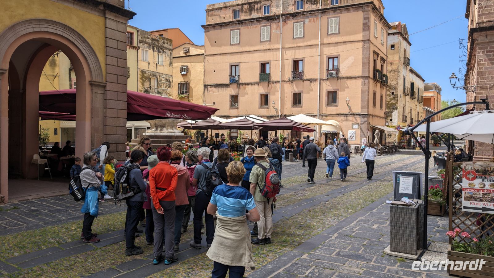 Bei einem kleinen Spaziergang durch die Altstadt führte uns Fiammetta in die Geheimnisse der Korallenstadt ein. Am Piazza Sventramernto steht der Nougatstand. Die Kirche des Heiligen Michael mit seiner bunten Kuppel, wurde neu renoviert. Der markante Turm am Piazza Sulis erhielt seinen Namen vom sardischen Revolutionär Vittorio Sulis, der im 19. Jahrhundert 22 Jahre hinter diesen 6 m dicken Mauern verbringen musste.