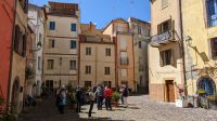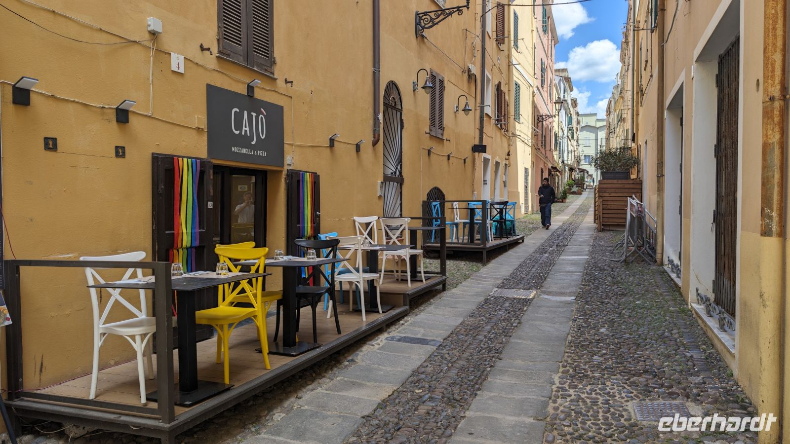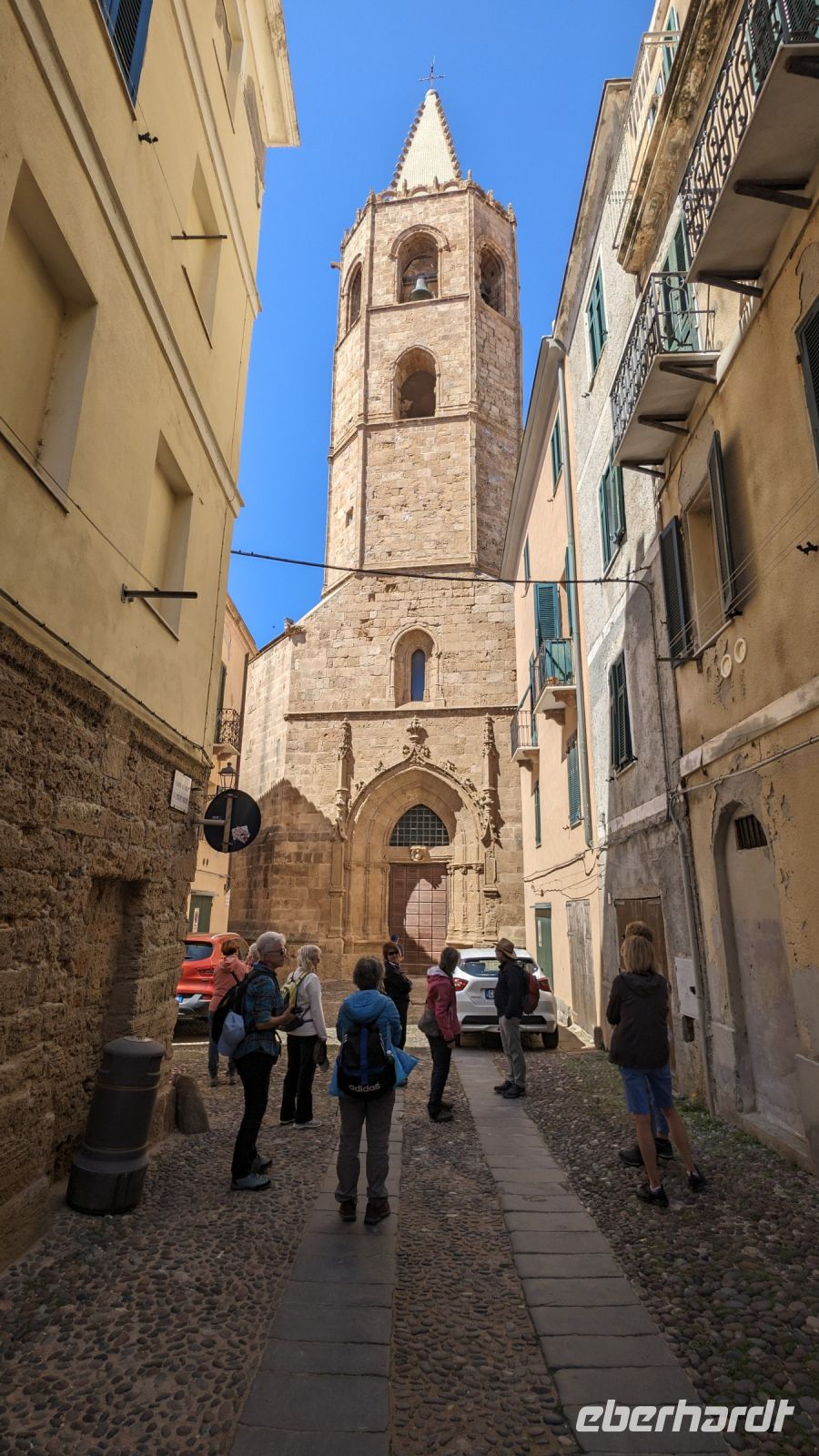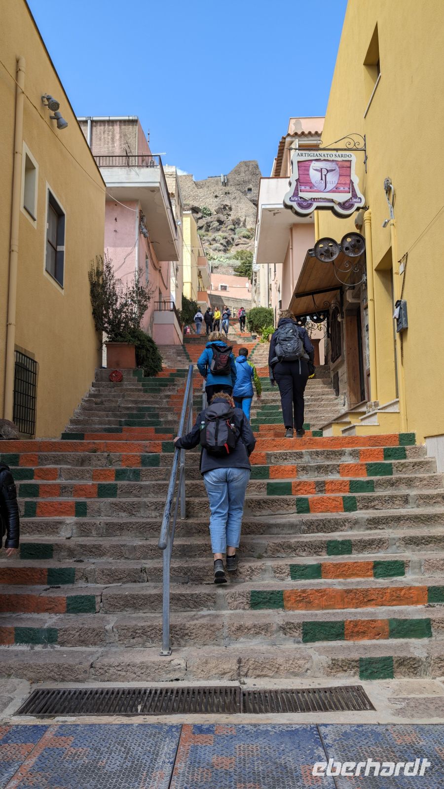 Bei einem kleinen Spaziergang durch die Altstadt führte uns Fiammetta in die Geheimnisse der Korallenstadt ein. Am Piazza Sventramernto steht der Nougatstand. Die Kirche des Heiligen Michael mit seiner bunten Kuppel, wurde neu renoviert. Der markante Turm am Piazza Sulis erhielt seinen Namen vom sardischen Revolutionär Vittorio Sulis, der im 19. Jahrhundert 22 Jahre hinter diesen 6 m dicken Mauern verbringen musste.