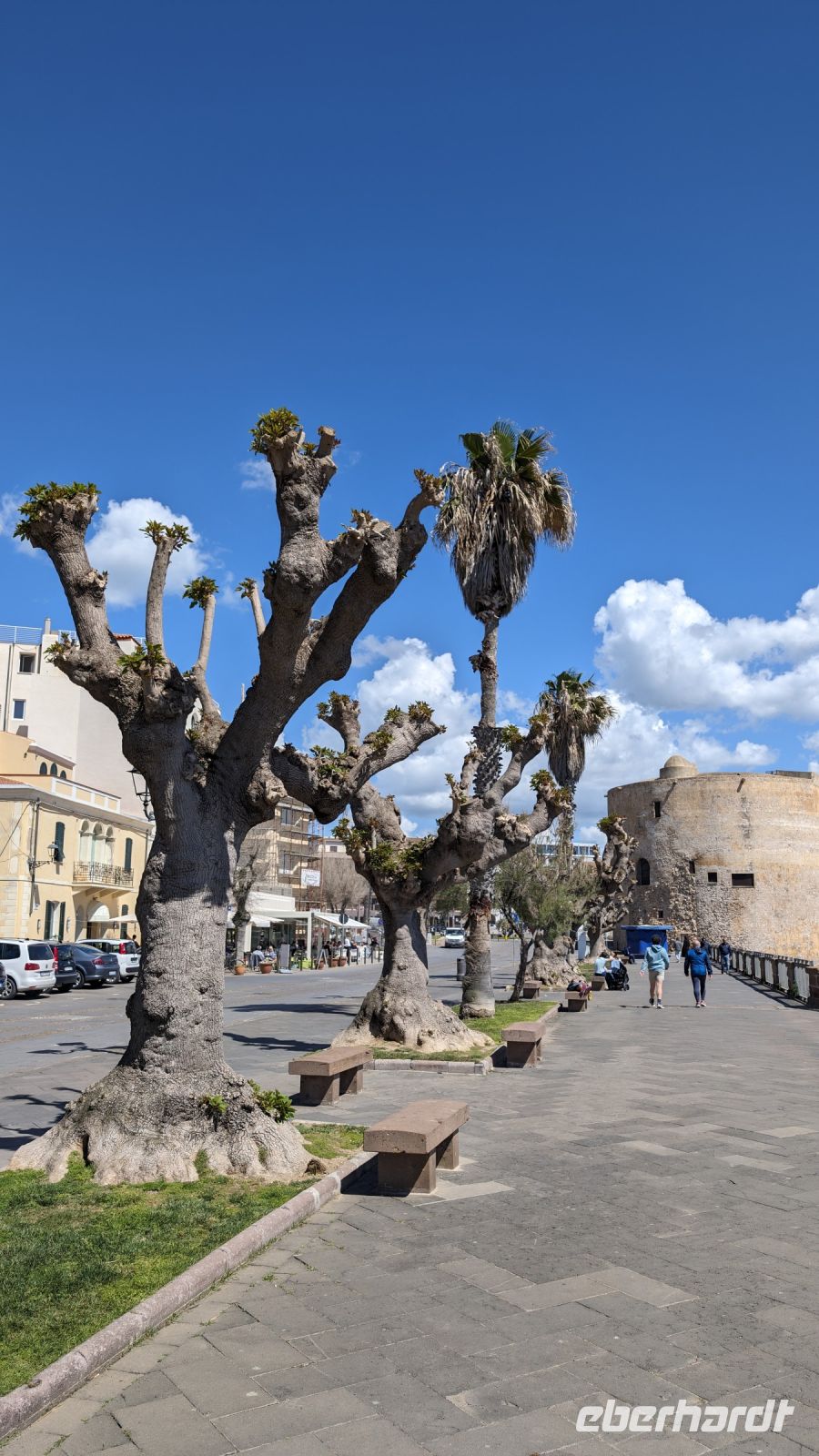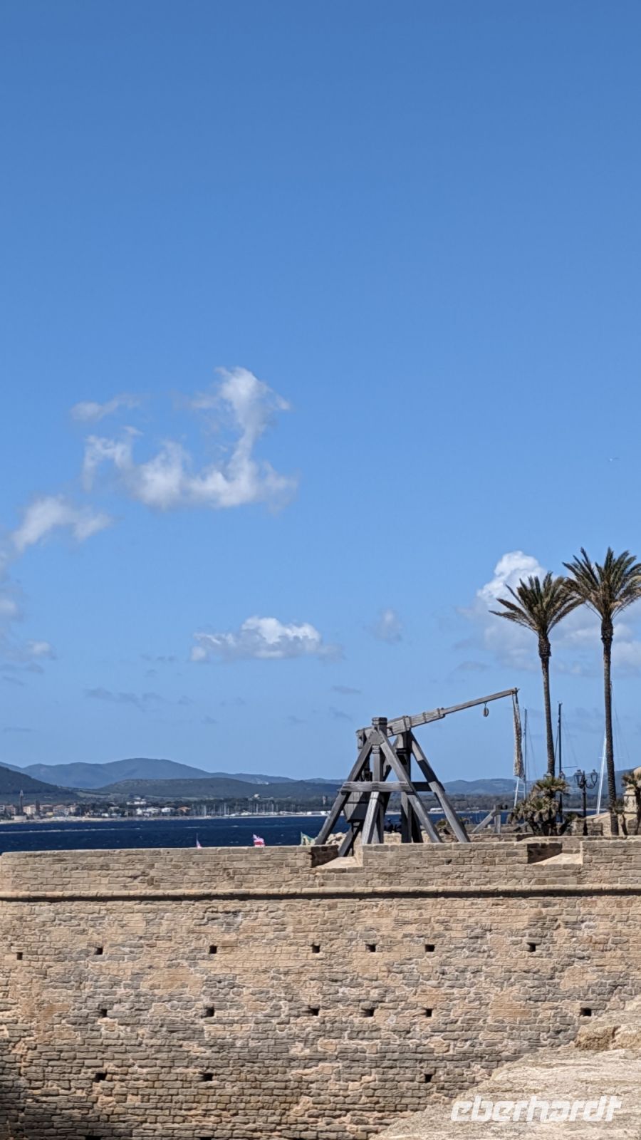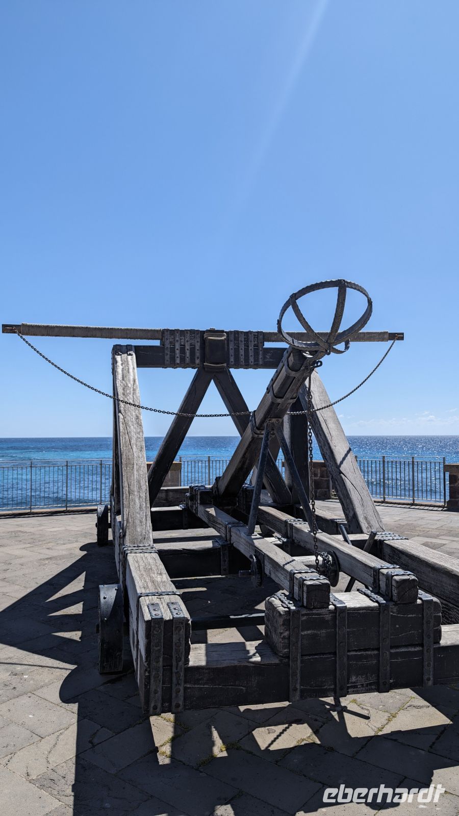 Das Katapult an der Karmelmauer steht in der Bastioni Christoforo Colombo. Im Turm San Giacomo befindet sich heute das Korallenmuseum.
