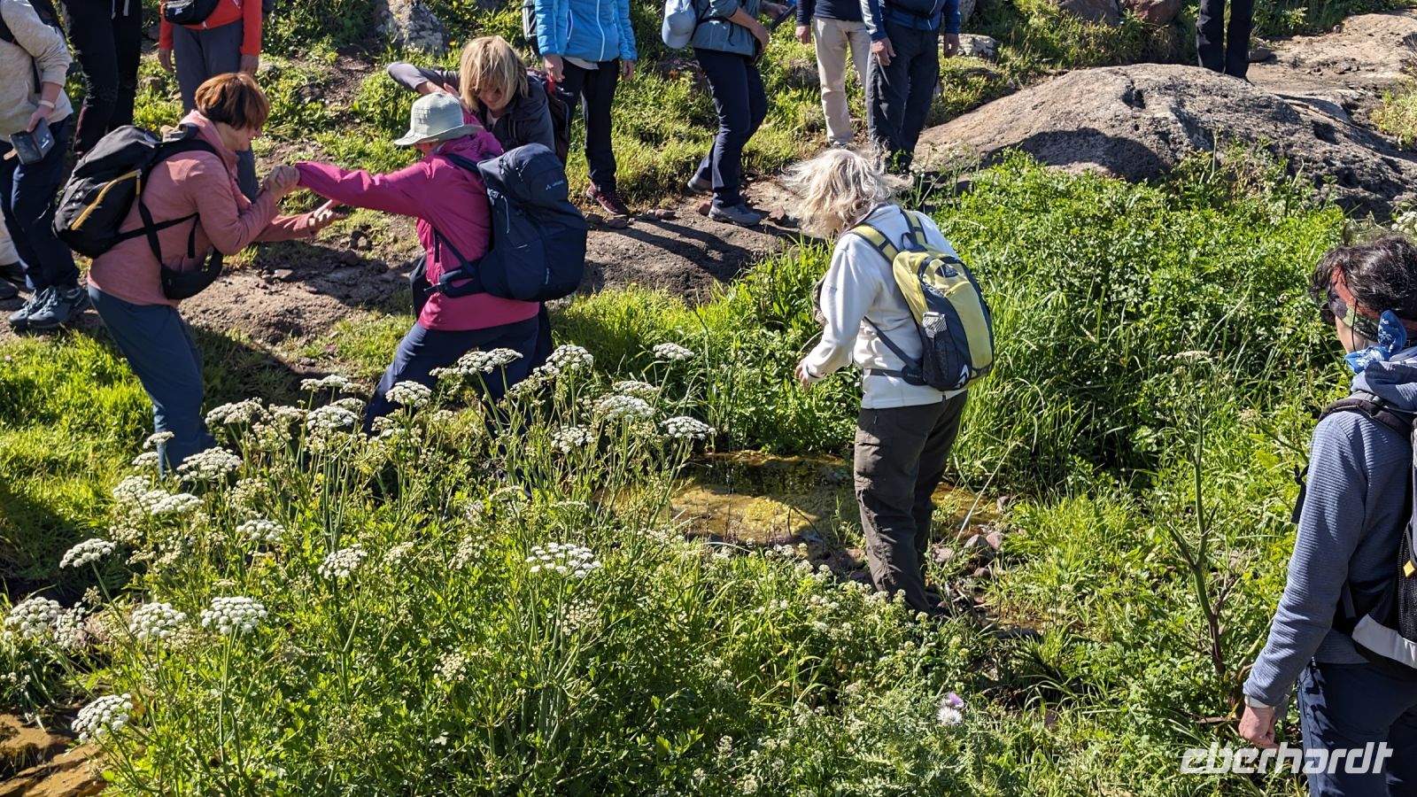 Gemächlich schritten wir durch sattes Grün. Im April ist es etwas zu früh, die Vegetation steht noch nicht in voller Blütenpracht, nur der Affodill blühte schon rosa. Den aufmerksamen Augen unserer Gruppe entging aber nur selten die ein oder andere farbenprächtige Blüte, die sich ihren Weg, durch das dichte Gras hin ins Sonnenlicht, zuerst erkämpfen musste.