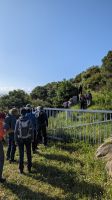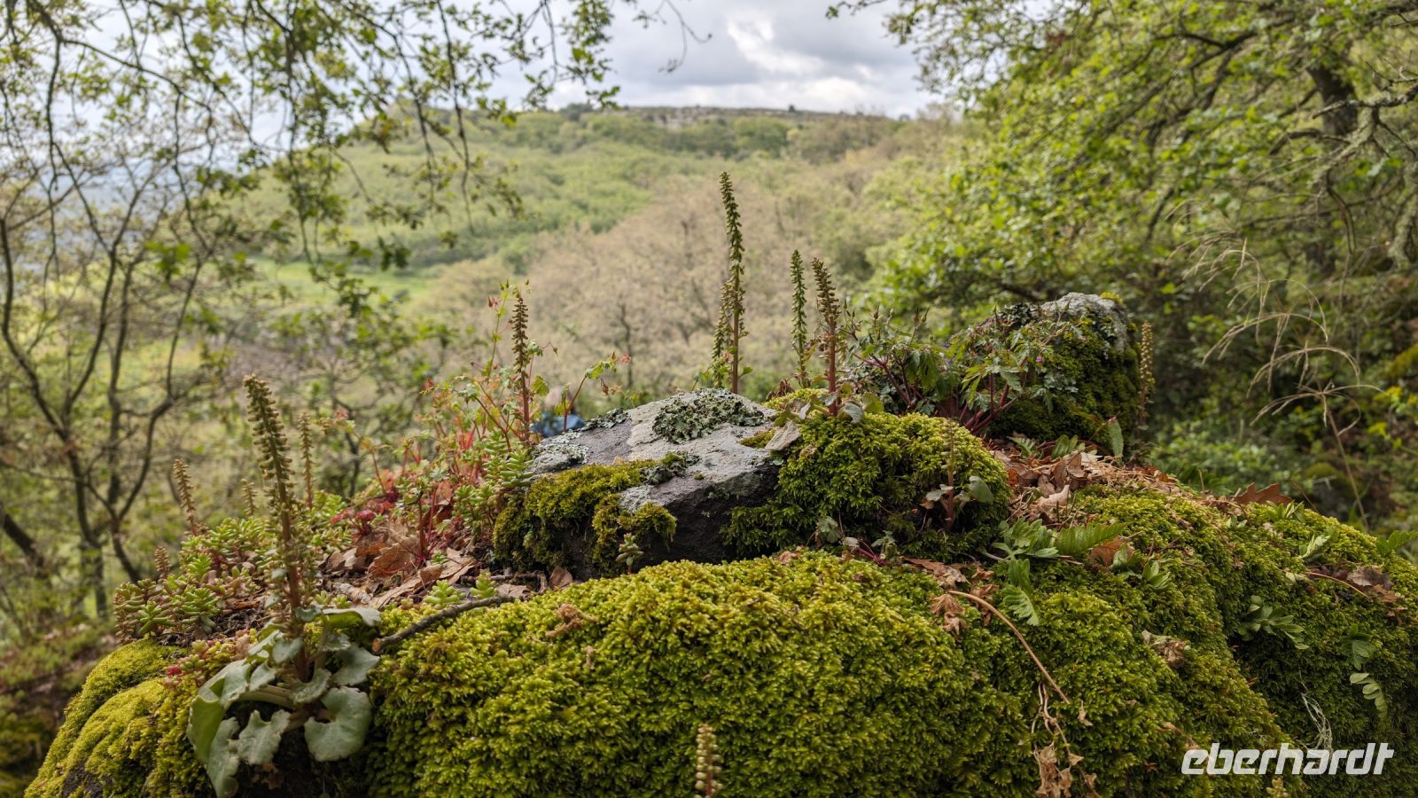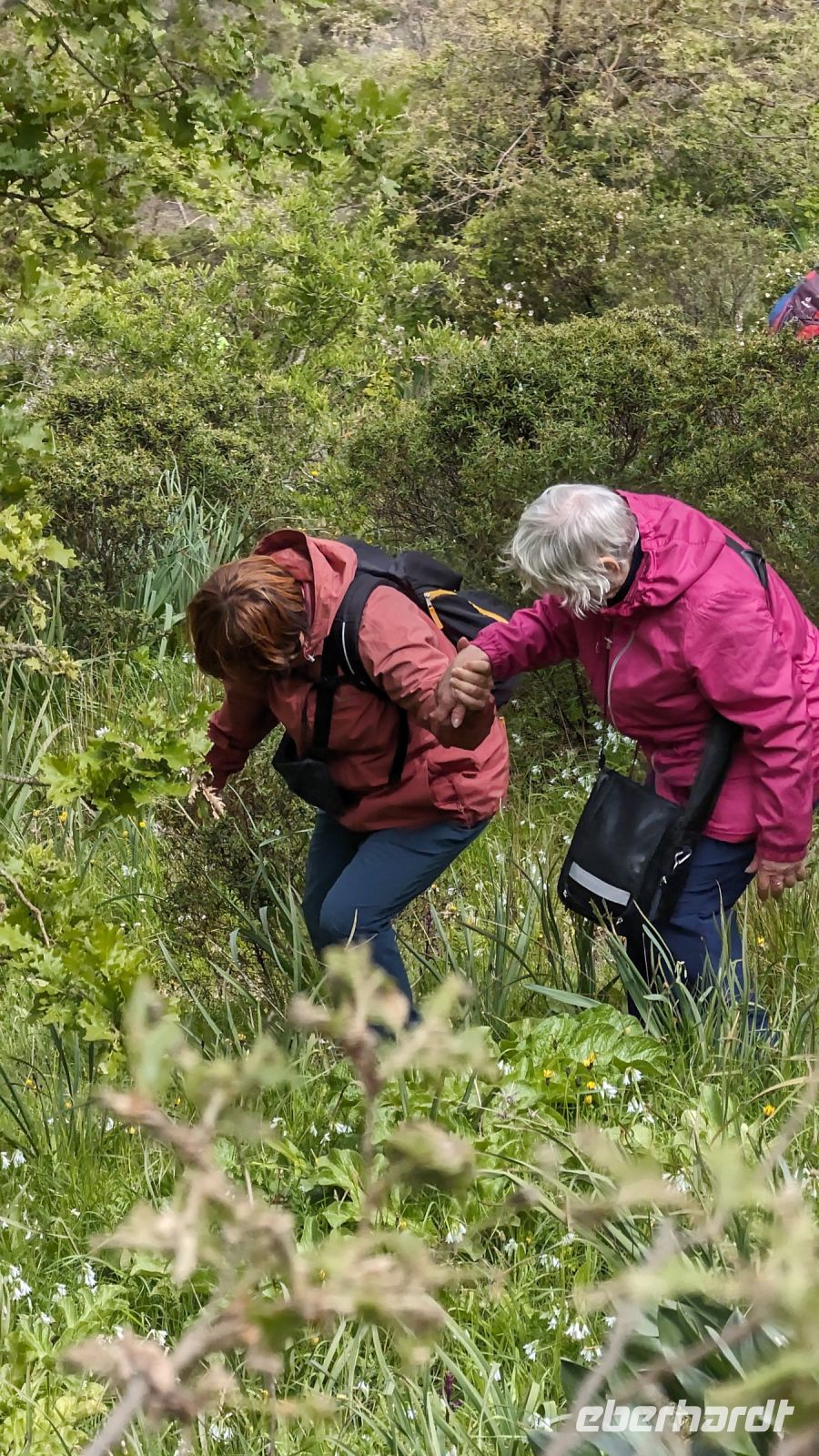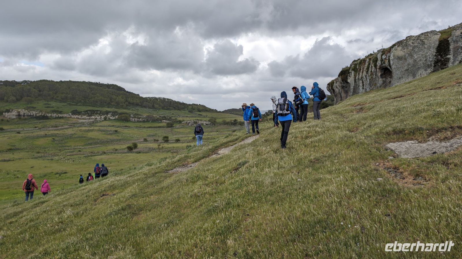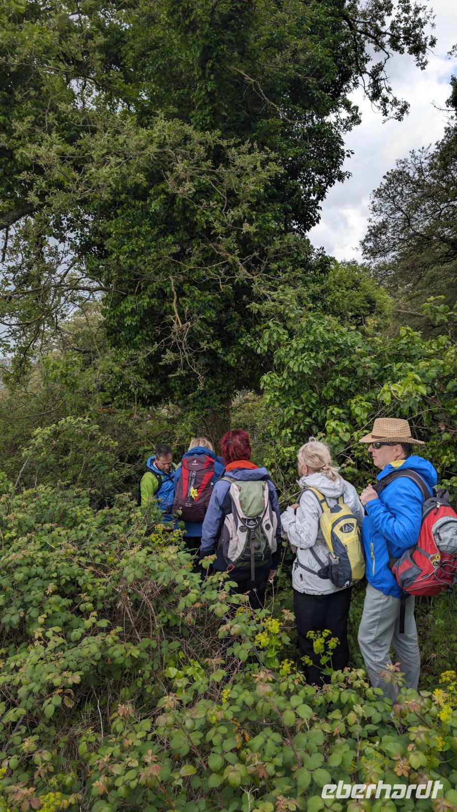 Die Viehweiden verließen wir indem wir alle über eine ‚Steinmauer klettern mussten und gelangten in einen dichten Steineichenwald. In der Gruppe war eine Dame mit 84. Erstaunlich wie gelenkig und fit sie so manches Hindernis bezwang und sichtlich Spaß an solchen Herausforderungen hatte.