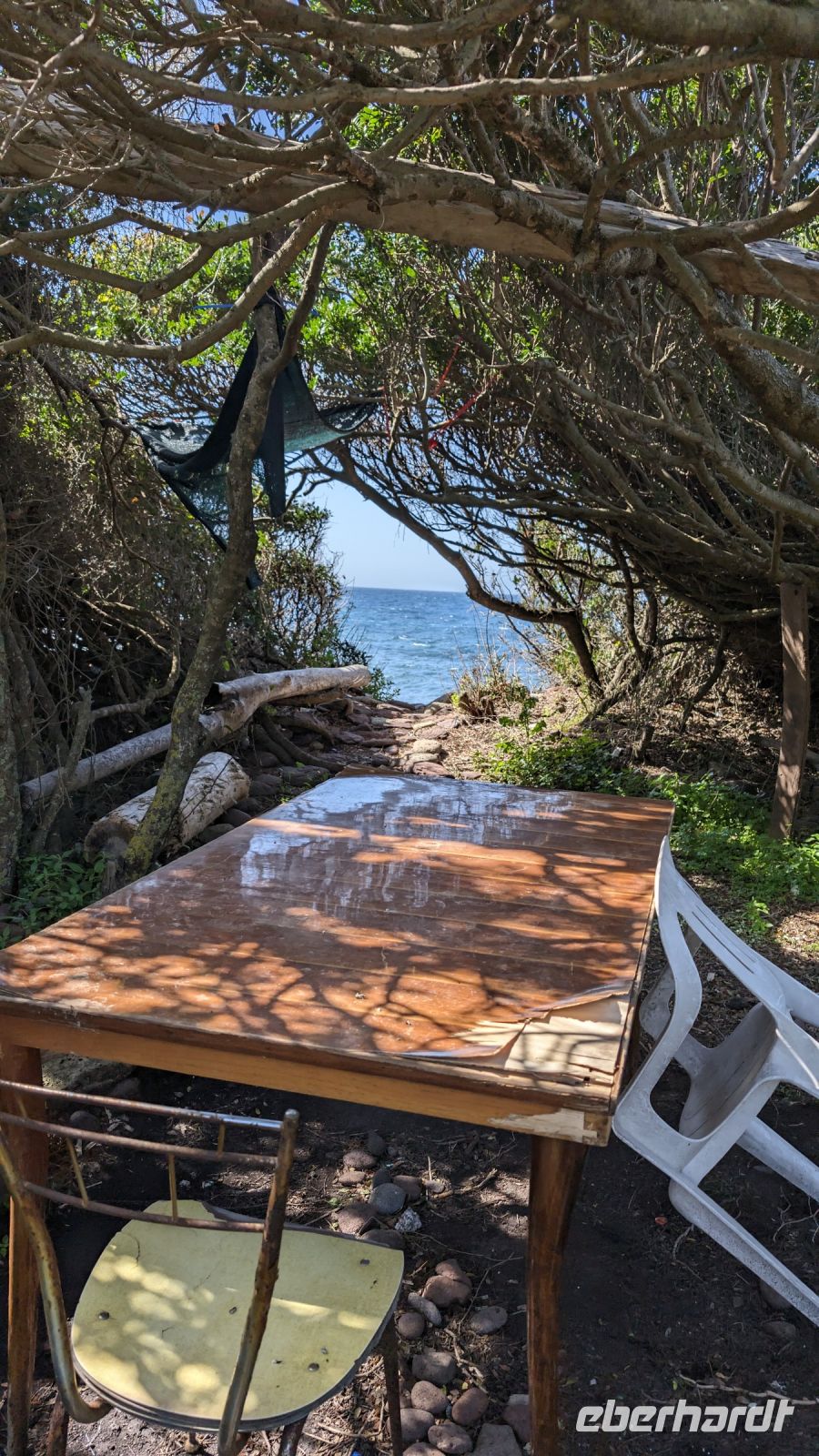 An den Berghängen beugten sich die Pfanzen und Bäume der Gewalt des Windes. Das gigantische Schauspiel der Natur erinnerte mich an die Schöpfungsgeschichte, als Geist Gottes noch über dem Meer schwebte und er Wasser vom Wasser trennte und das Land erschuf. So ähnlich muss diese Urgewalt mit ständigem Donnern und Rauschen geklungen haben, als sich das Land aus dem Meer erhob, als sich die erste Vegetation einpflanzte und die Tiere das Land bevölkerten. Und wir gingen mitten durch und waren Teil dieser Schöpfung.