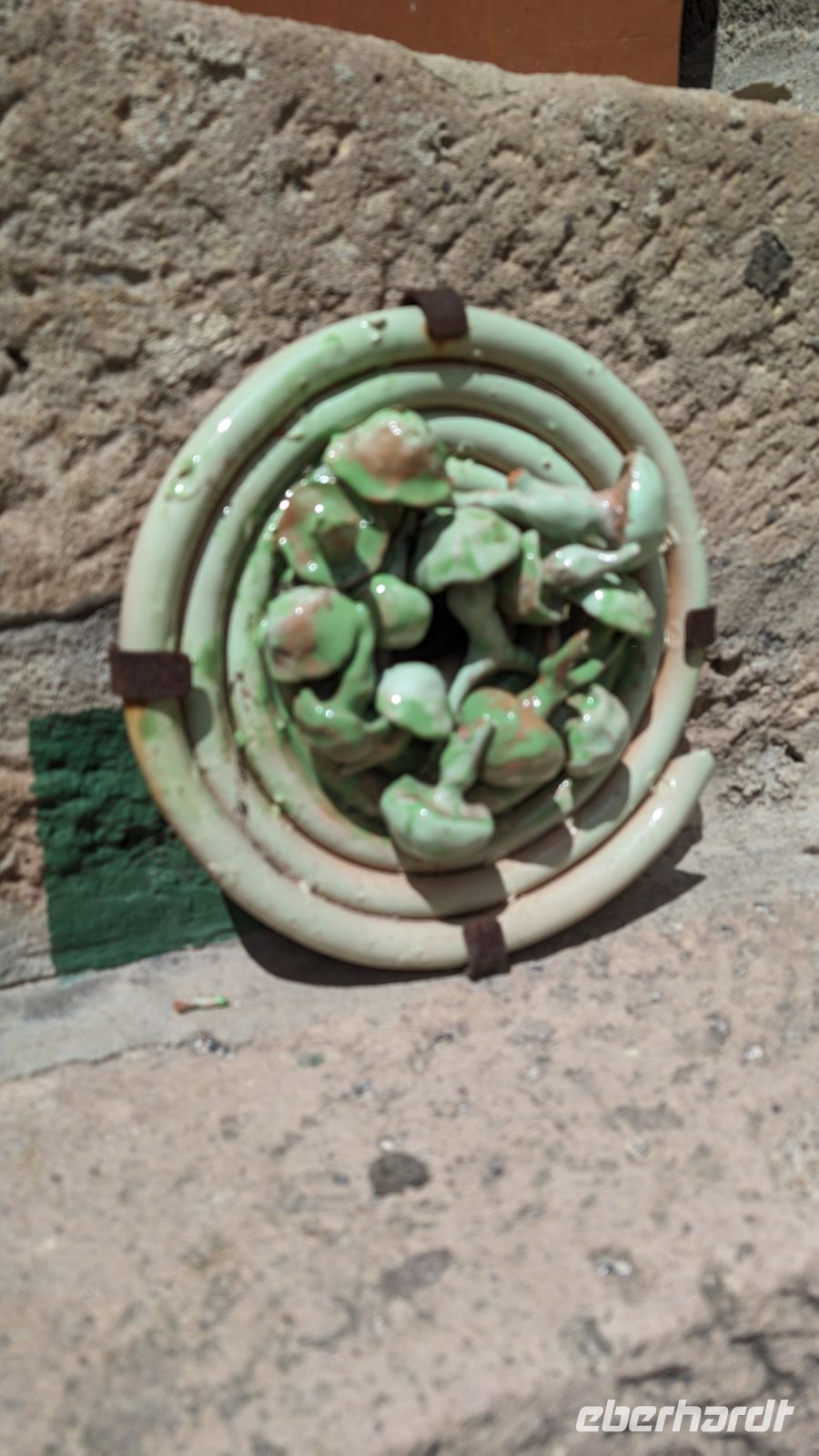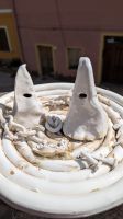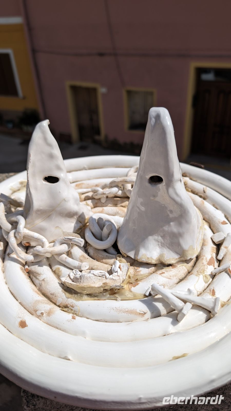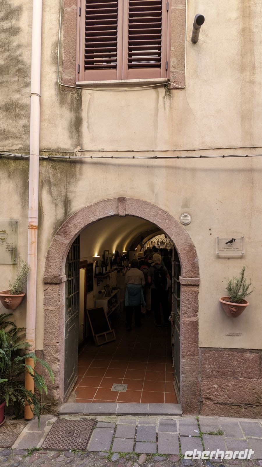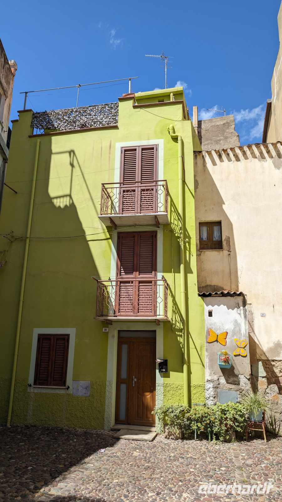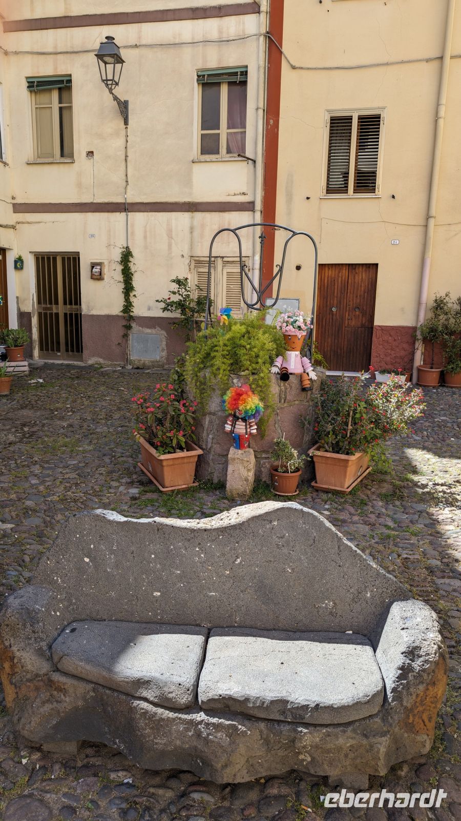Danach führte uns Fiammetta bei einem kleinen Stadtspaziergang in die verwinkelten Hinterhöfe von Bosa und zu den heimeligen Plätzchen. Wir sahen das schmale Haus mit den 2 alten Schwestern, die sich mit weit über 90 Jahren noch selbst versorgen, oder das grüne Haus das den Fortschritt einer eigenen Toilette hatte. Der wunderbar Innenhof, der vielleicht etwas kitschig gestaltet war, mit Puppen, Blumen und steinernen Bänken. aber sehr liebenswert und einladend.