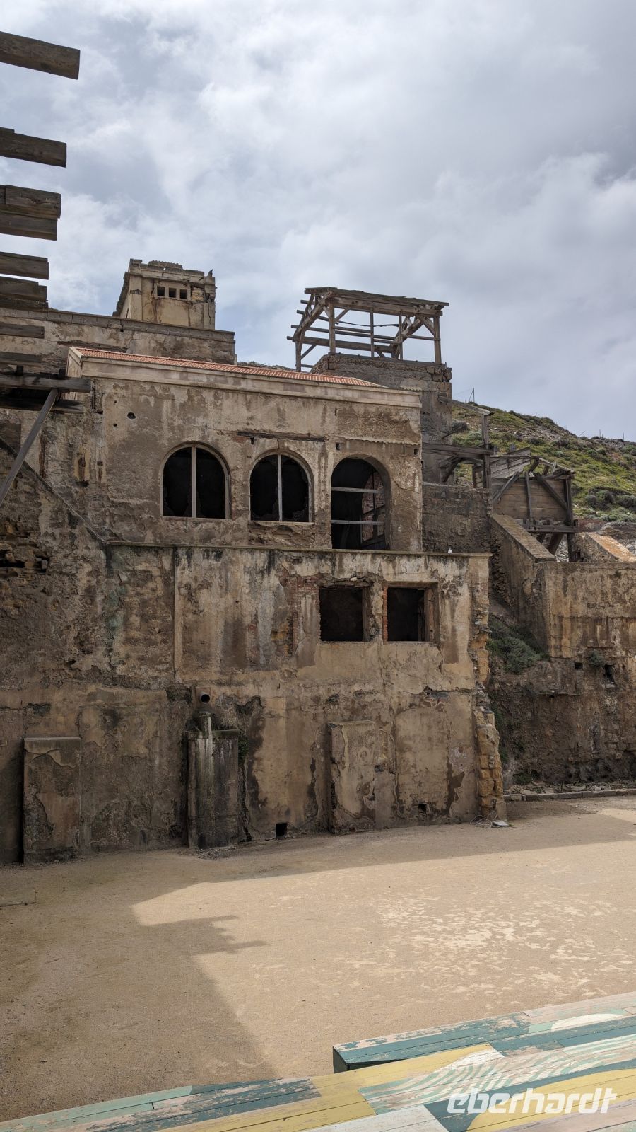 Wir hatten noch Zeit, so beschlossen wir die ehemalige Bergwerksstadt Argentiera zu besuchen. Heute gleicht dieses einst reiche Bergbaudorf einer Geisterstadt. Stillgelegte Schächte und die Ruinen der einst mächtigen Verarbeitungshütten sind stumme Zeugen jener „goldener“ oder besser gesagt jenes „Silbernen Zeitalters“. Die Silbererzminen wurden bis in die 1960iger Jahre betrieben. Es ist heute beeindrucken, wenn man durch den Ort schlendert hinunter ans Meer und sieht die fantastischen Formationen an den schwarzen Glimmerschieferfelsen, die die stetige Brandung des Meeres verursachte. Herausgewaschenes Quarzgestein durchzieht die Felsen wie pulsierende Adern mit Lebenssaft gefüllt.