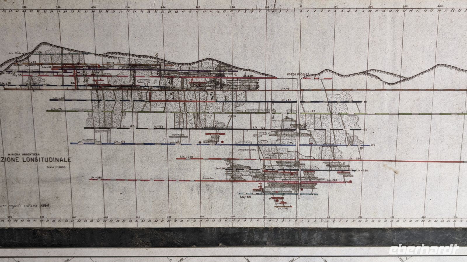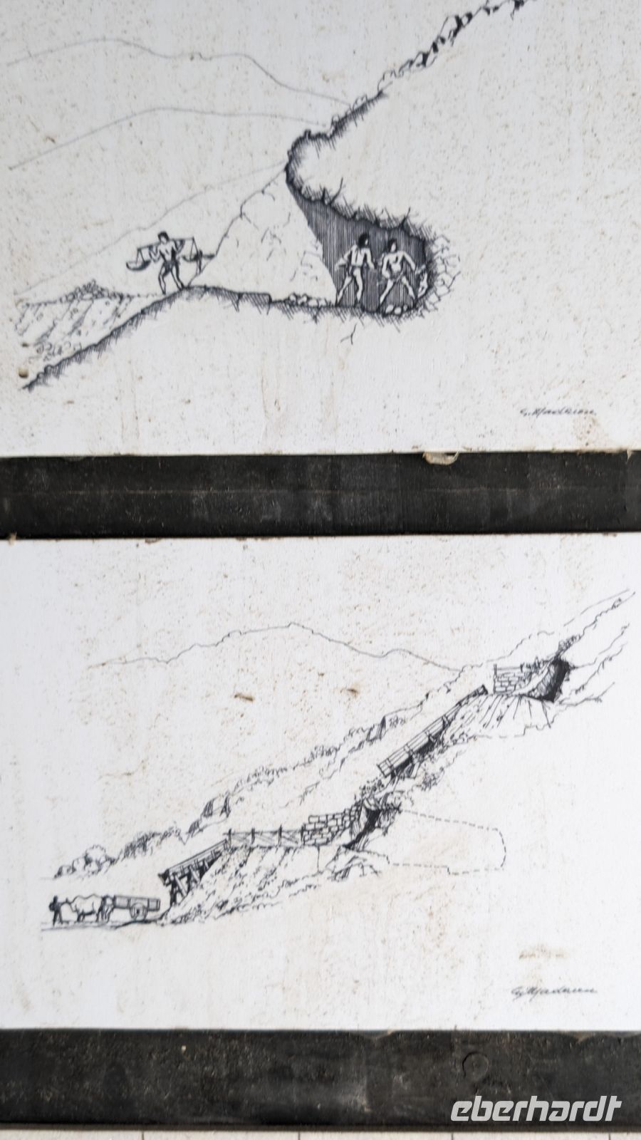 Mitten im Ort auf der Piazza befindet sich ein kleines schwarzes Holzhäuschen, das sich als eine Art Museum herausstellte, wo die Geschichte des Bergbaus und die Pläne der Stollen eindrucksvoll beschrieben werden.