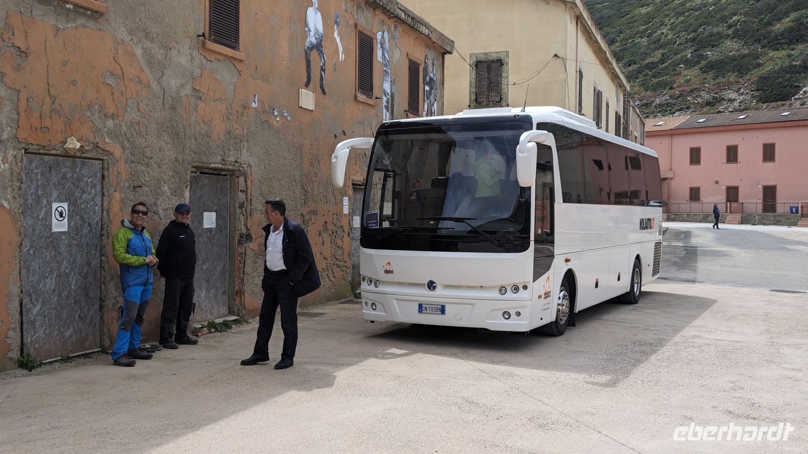 Wegen unserer guten halbstündigen Verspätung ließ er seinen Bus hinüber nach Fertilia fliegen.