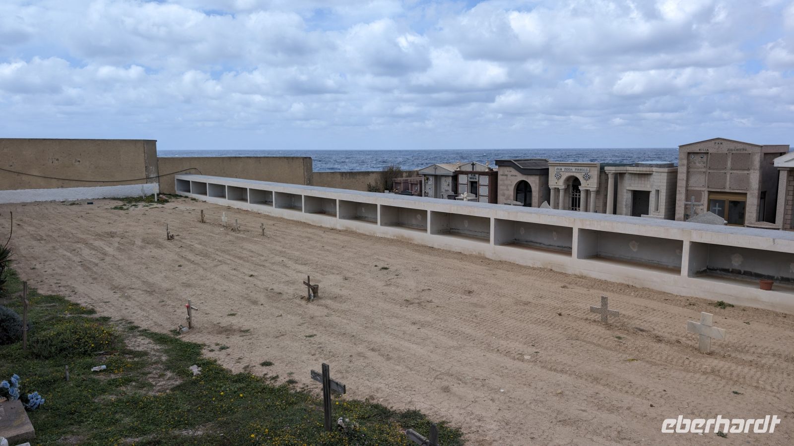 Etwas außerhalb der Stadt befand sich der Friedhof. Durchaus ein Besuch wert, denn er befindet direkt oberhalb des Meeres. Hier findet man neben normalen Gräbern eine Vielzahl von riesigen Familiengruften, teilweise sogar mit eigener Kapelle.