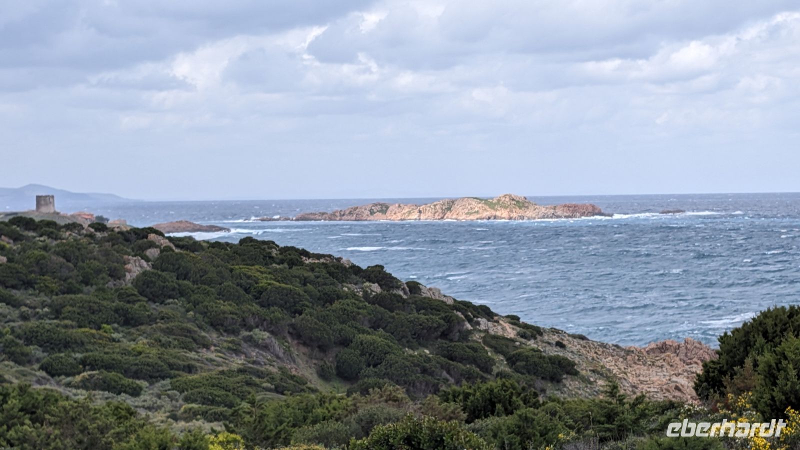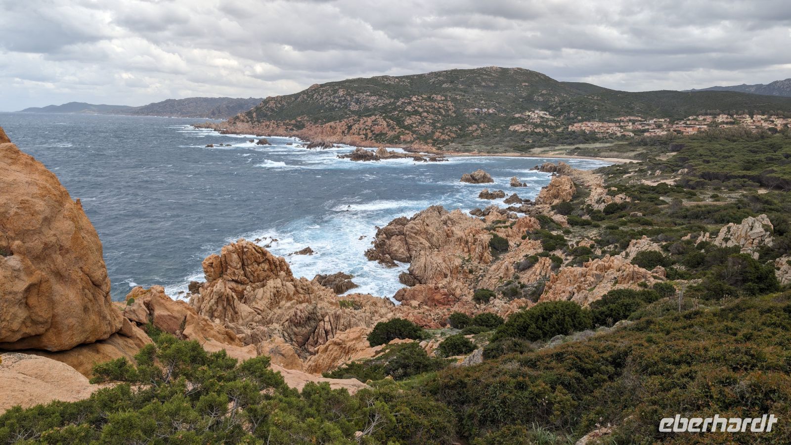Herrlich der Ausblick hinüber nach Valledoria und am Horizont leuchteten jetzt die roten Felsen von Isola Rossa.