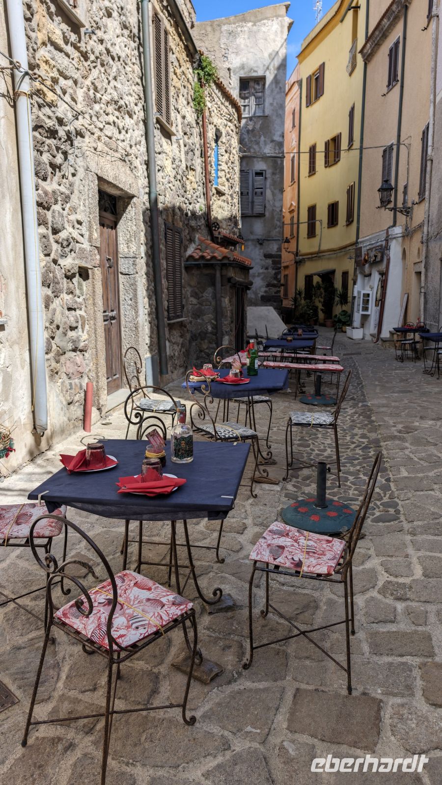 Noch ist keine Saison, denn in den schmalen Gassen, zwischen den Restaurants und Kneipen findet sich immer wieder eine Familie die bei geöffneten Türen Körbe in allen Größen flechten mit den typischen sardischen Mustern und Farben.