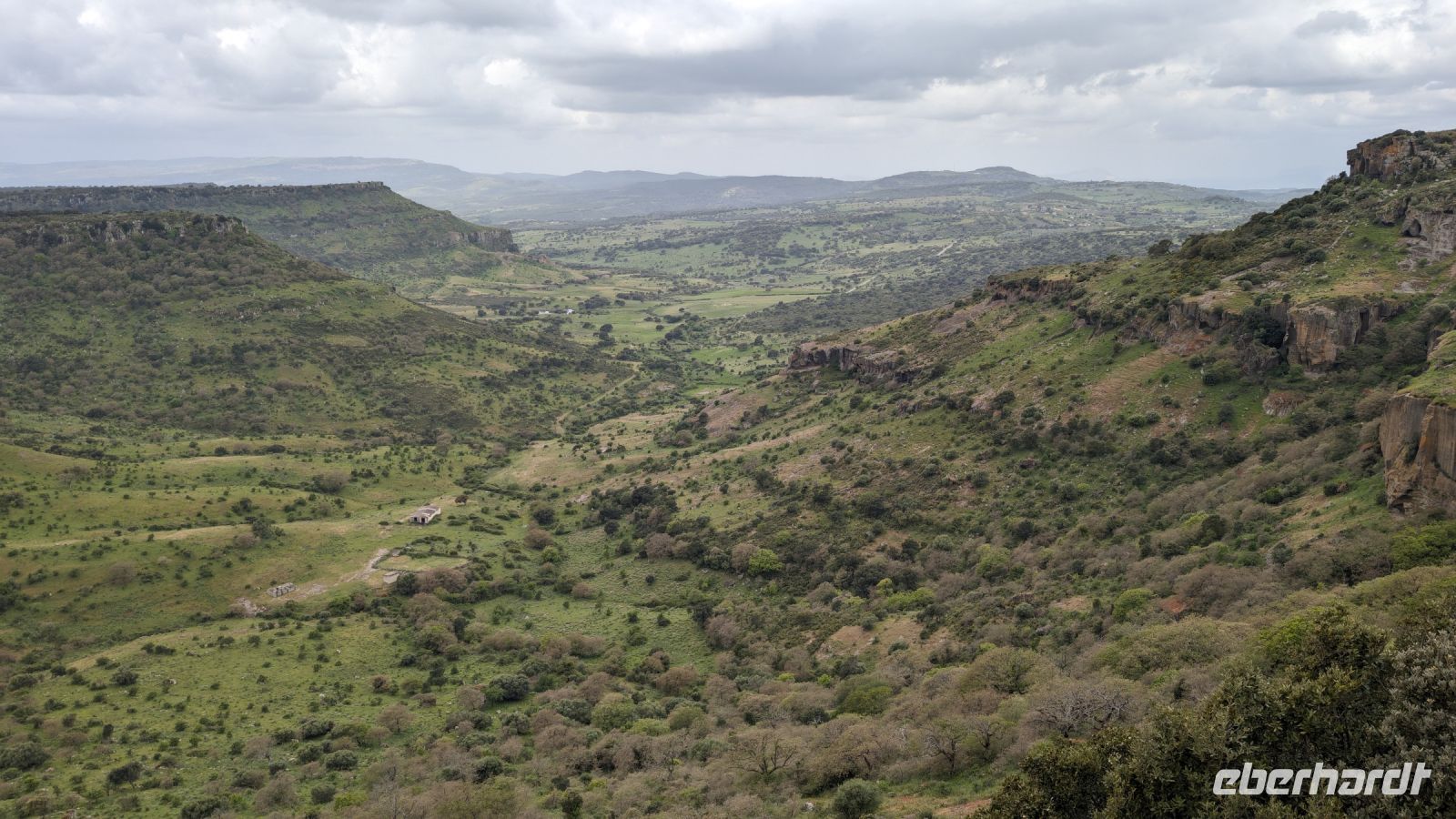 Umgeben von Basalt- und Trachytgestein erreichten wir die Hochebene des Monte Dorro. Ein grandioser Ausblick eröffnete sich uns hinunter in das Tal und auf die umliegenden Tafelberge. Ein einsamer Bauernhof in der unendlichen Weite einer wilden Natur, weitab jeder Zivilisation. Hier muss man kämpfen um zu überleben. Der Wind wehte und er trug unsere Gedanken weit weit fort.