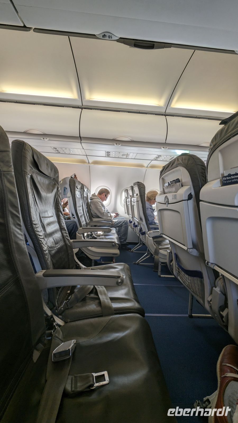 Der nicht voll besetzte Flieger bescherte uns einen ruhigen und entspannten Flug. Plätze wechseln, wenn man denn wollte, war durchaus möglich. Natürlich waren die Fensterplätze schnell belegt.