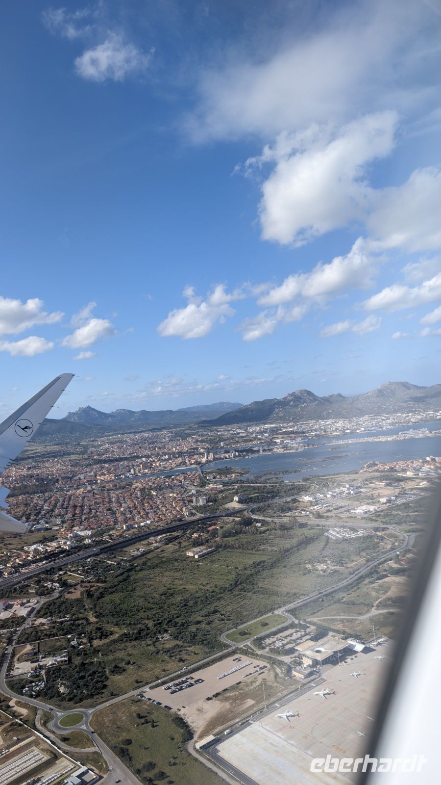 Sardinien empfing uns mit Wind. Einige Turbulenzen in der Luft machten den Flug
