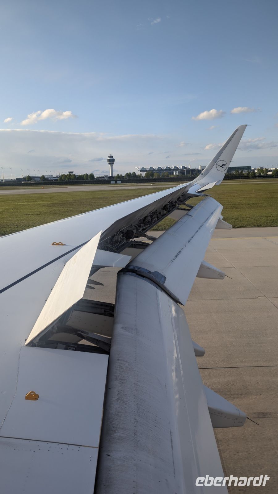 Typisches Aprilwetter, Schneefall auf der Autobahn Richtung München und Sonne in München. Der Flughafen im glänzte in der Sonne, der Koffer aufgegeben. Der Sicherheitscheck verlief ohne Probleme und jetzt gab es noch genügend Zeit durch die Hallen des Flughafens zu schlendern und die Angebote zu studieren oder die geschäftigen Leute auf ihren Wegen zu den jeweiligen Gates.