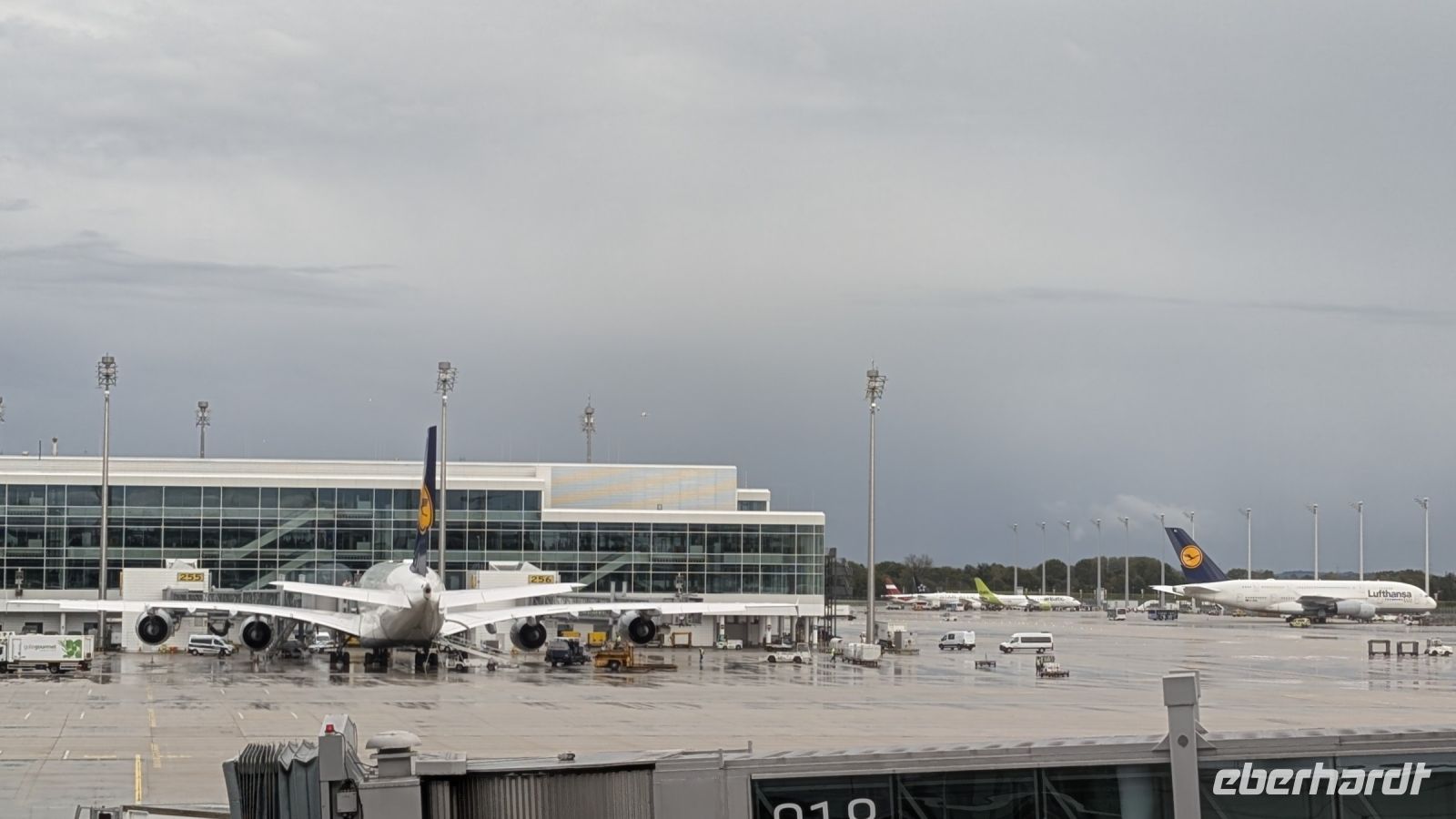 Keine Spur vom „Goldenen Oktober“ hier in Bayern, Regen in München. Wir schauten durch riesige Glaspanoramafenster hinüber zum Hangar. Stolz und mächtig, 2 riesige Vögel. Wohin wird wohl ihre Reise gehen?