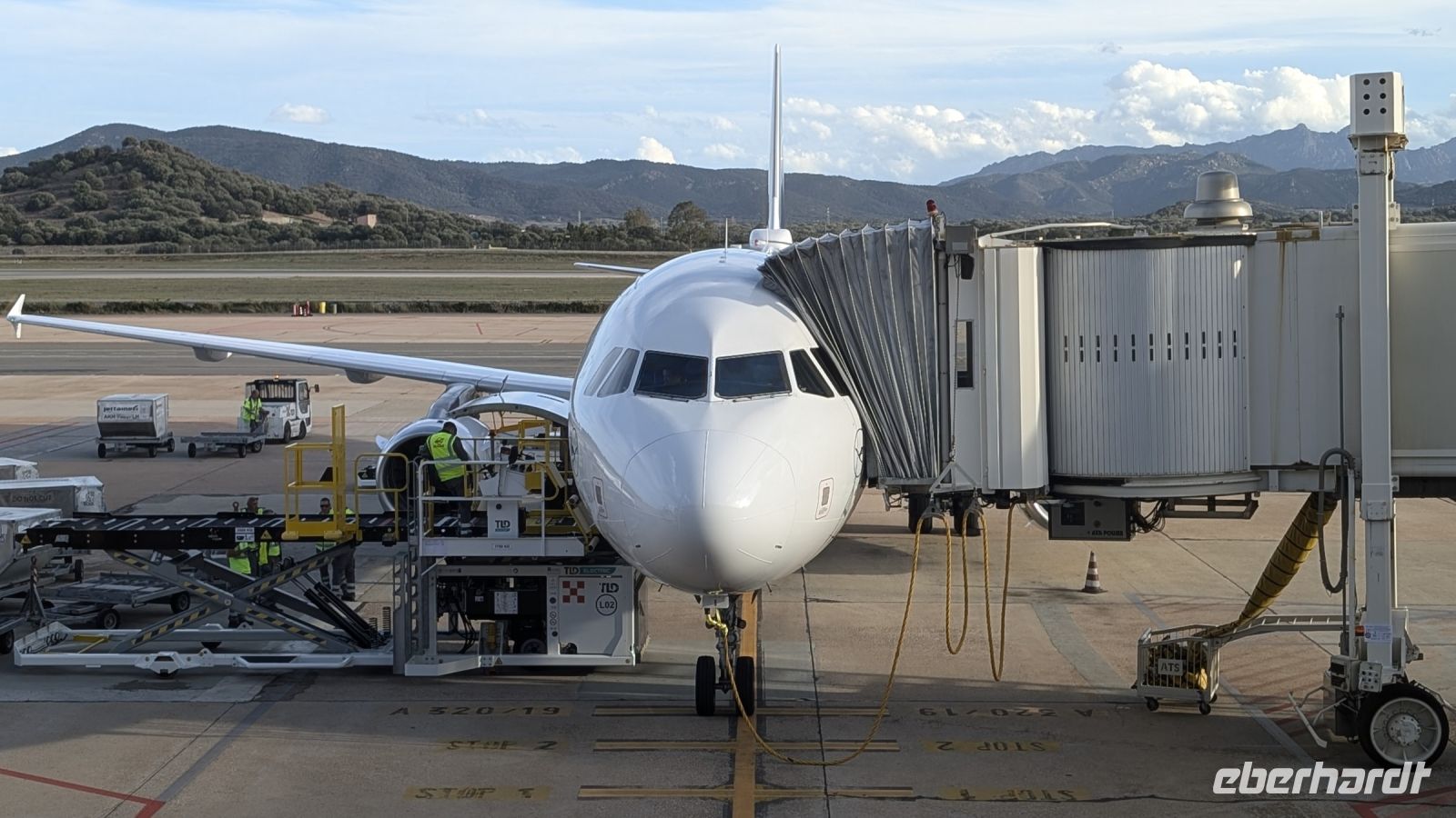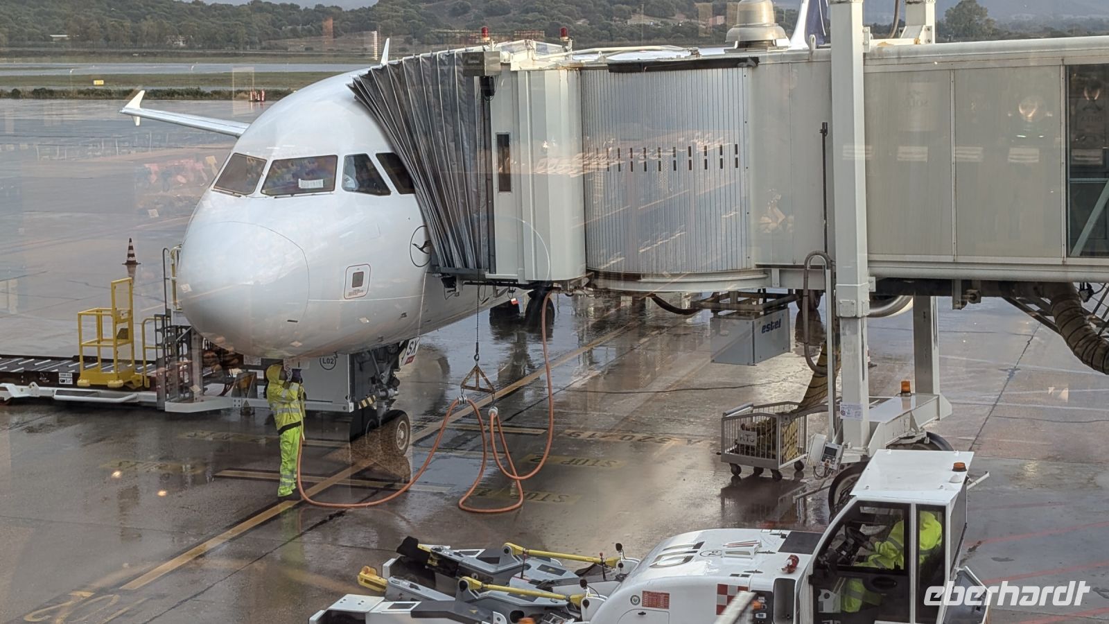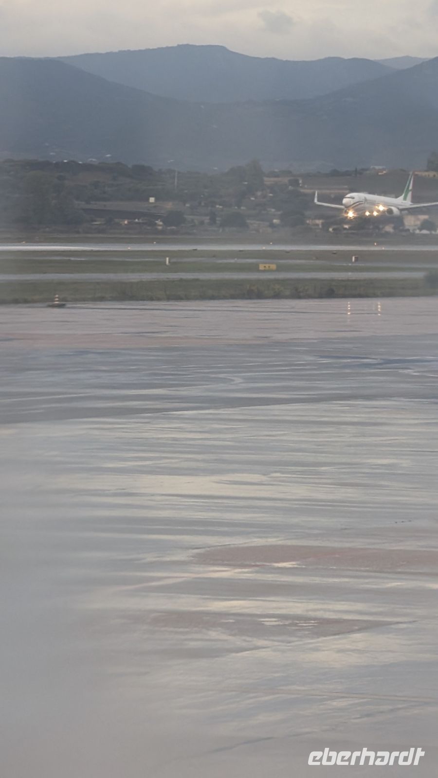 Doch bald kamen die ersten Veränderungen. Flüge wurden verschoben. Der Münchner sogar 3 x, bis der Flieger letztendlich um 18.45 Uhr abhob. Grund war hier zum einen eine verspätete Ankunft des Fliegers und zum zweiten ein Gewitter, das über Olbia zog und bei Gewitter darf keine Verladung im Flugzeug stattfinden.