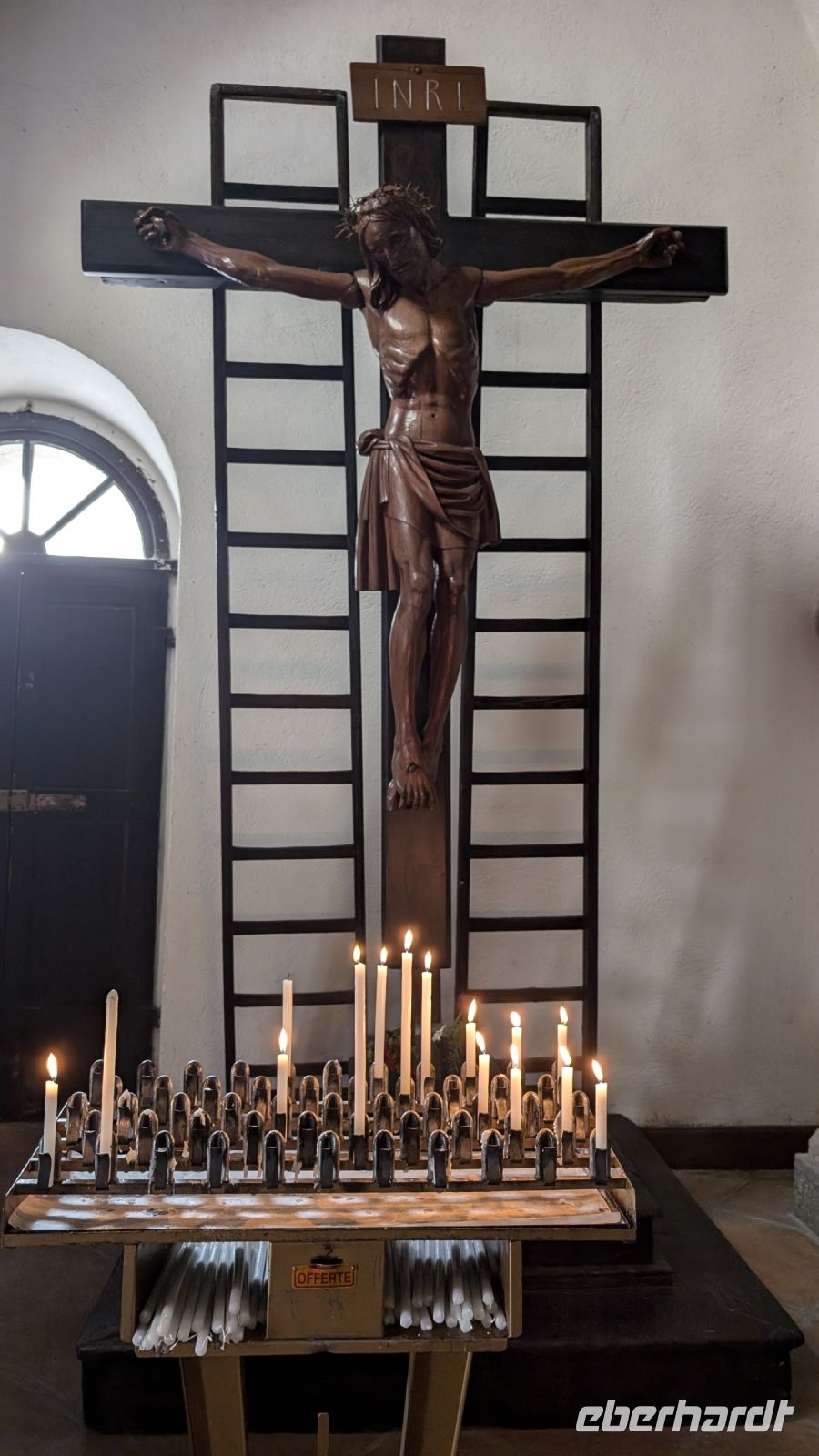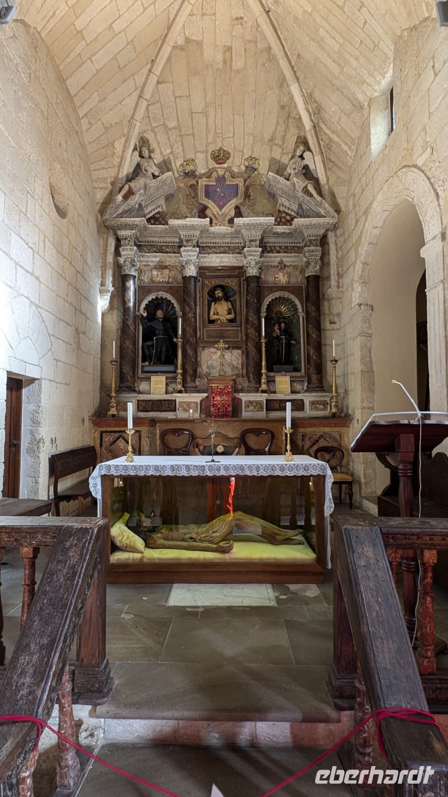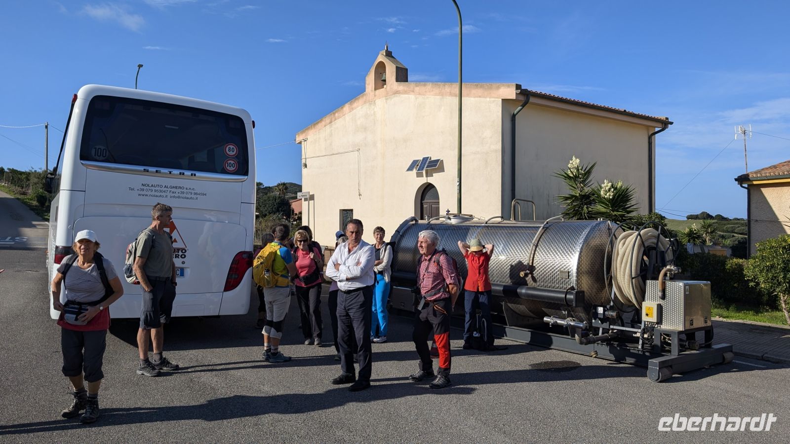 Salvatore brachte uns hinüber nach La Pedraia. Eine eher einsame Gegend mit ein paar Häusern und der kleinen Kirche, Nostra Signora di Fatima. Vor der Kirche ein riesiger Edelstahltank, gefüllt mit Trinkwasser für Wanderer und Einwohner.
