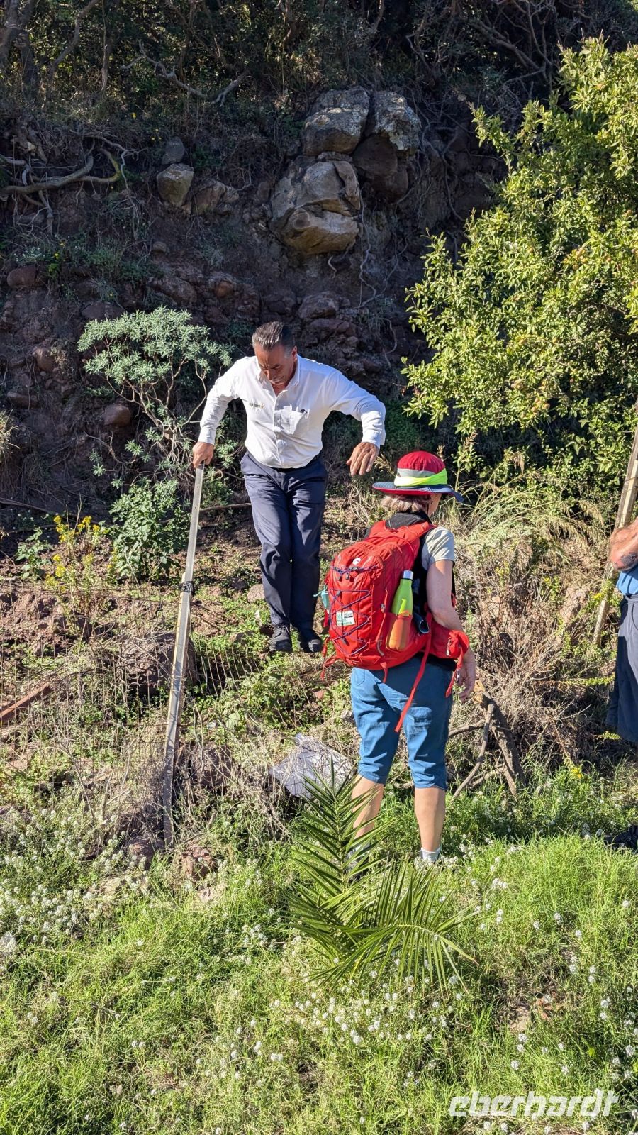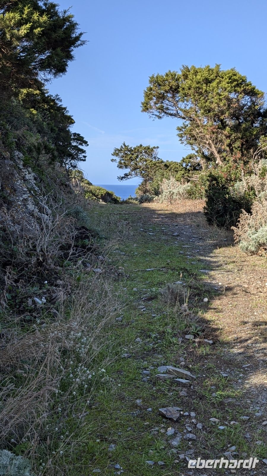 Was sich so alles tut und verändert, weiß man erst, wenn man öfter auf die Insel gekommen ist. Im April noch nicht, aber jetzt schon. Unser Zugang zum Wanderweg war mit Stacheldraht, Eisentor und Vorhängeschloss versperrt. Einen regulären Zutritt gab es nicht. Salvatore, unser Capo di Macchina, trat kurzerhand den Zaun nieder und ermöglichte uns so, den Beginn einer grandiosen Wanderung.