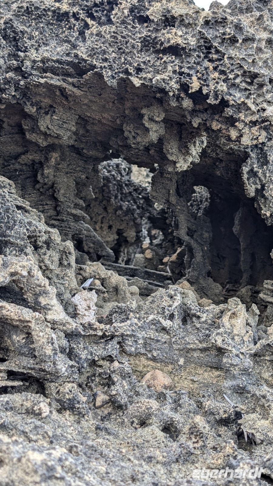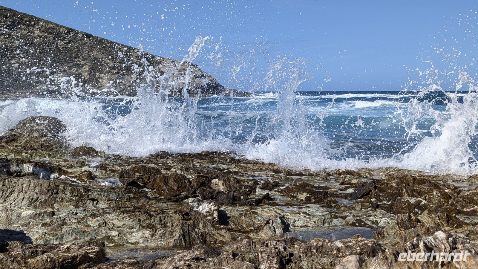 Zunächst am Meer entlang mit bizarren Gesteinsformen und kleinen Höhlen, hin zu einer Bunkeranlage aus dem 2ten Weltkrieg, bei der nie ein Kampf stattgefunden hatte. Gott sei Dank.