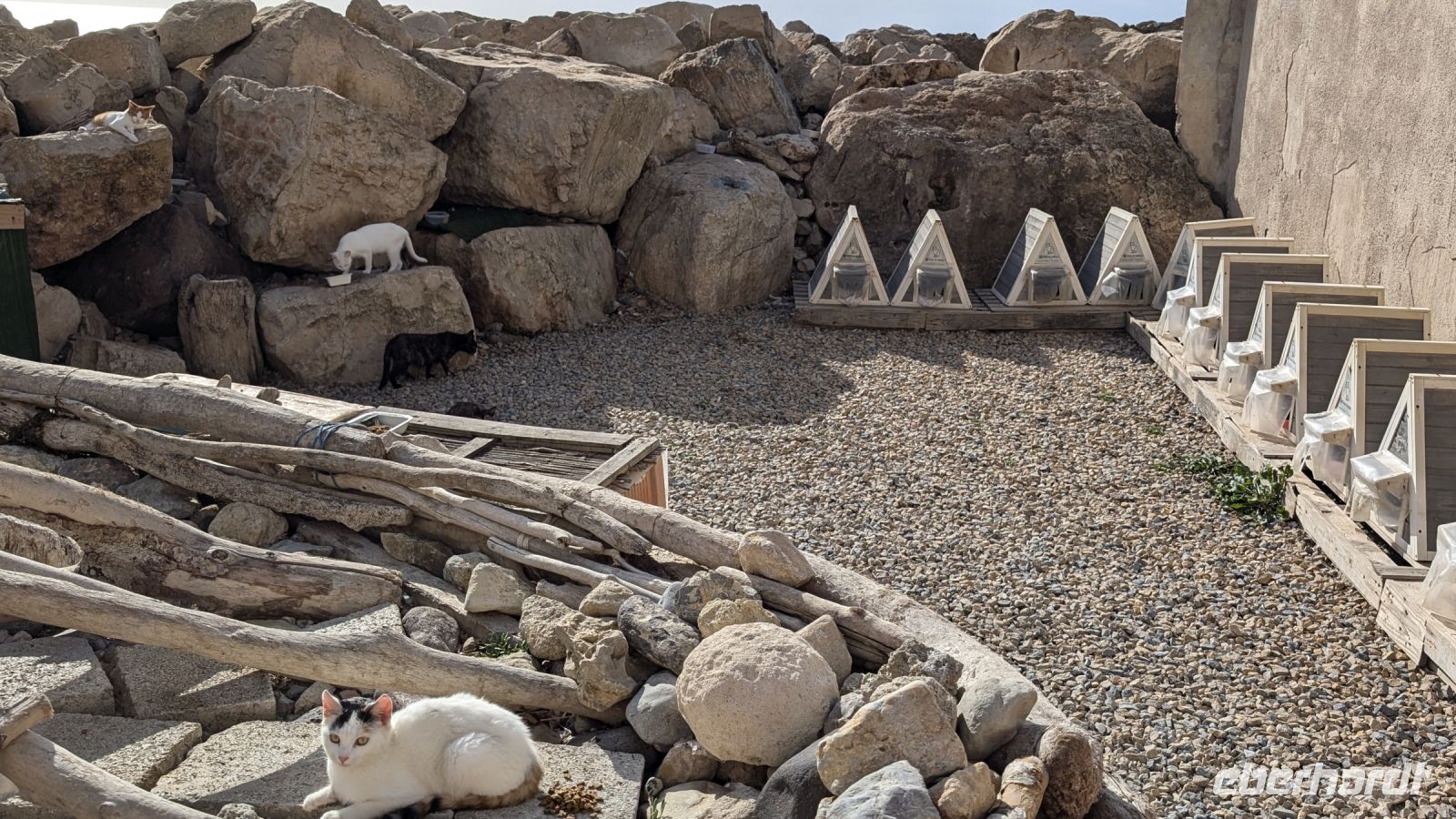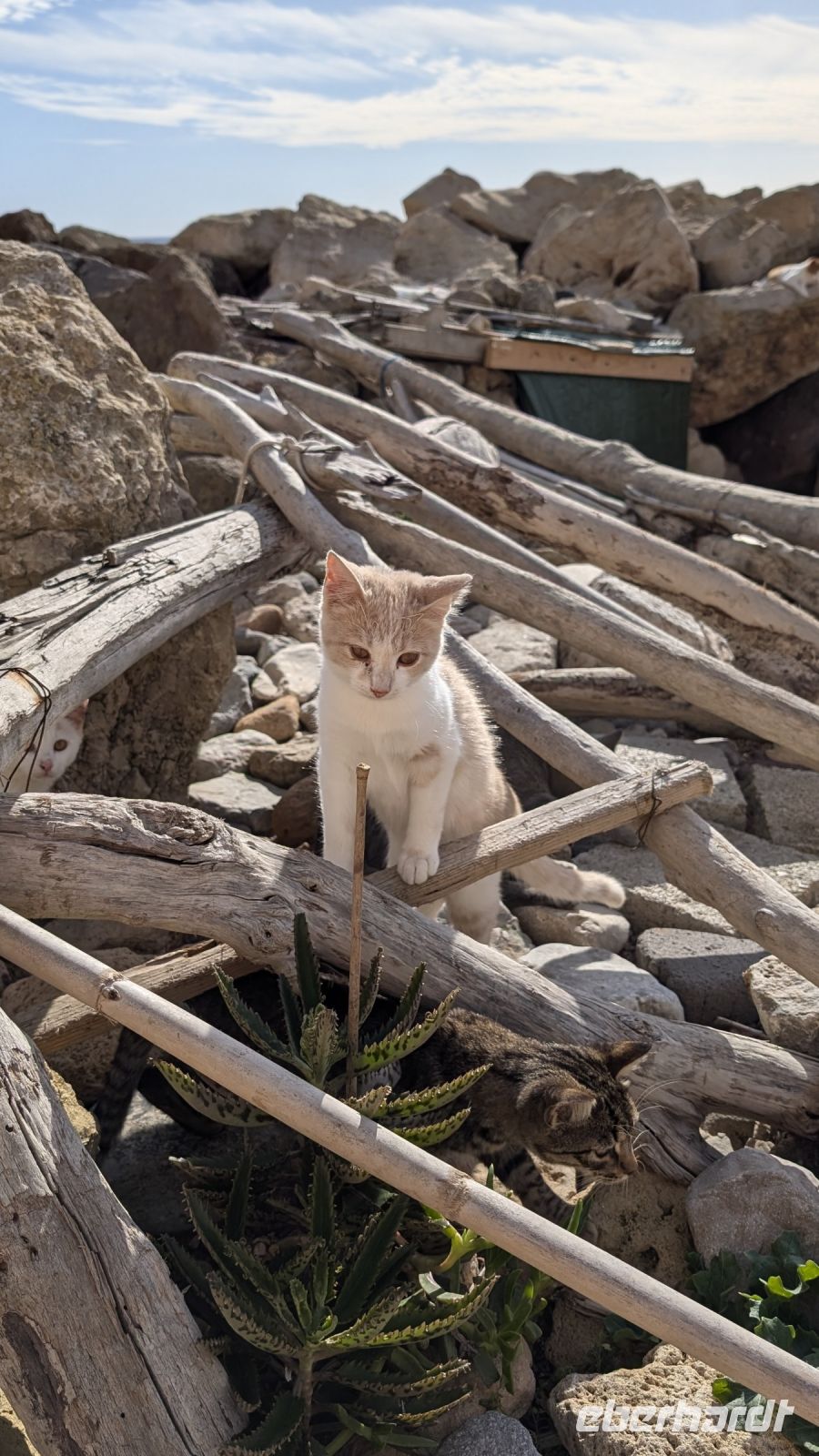 Selbst die wilden Katzen von Alghero finden hier ein Zuhause und fühlen sich sichtlich wohl. Eine kleine „Katzenstadt“ am Stadtrand. Jede/r hat sein eigenes Häuschen, es gibt ein kleines Zentrum in der Mitte, eingerahmt von Felsen zum Verstecken, Spielen oder einfach nur als Schattenspender. Von irgendjemand bekommen sie täglich frisches Futter und Wasser und die Tiere haben ein Rumdum-Sorglos-Paket mit Vollpension. Auch ein Zeichen, wie lieb die Insel mit wilden Tieren umgeht. In der Stadt Alghero wird man keine streunende Katze finden