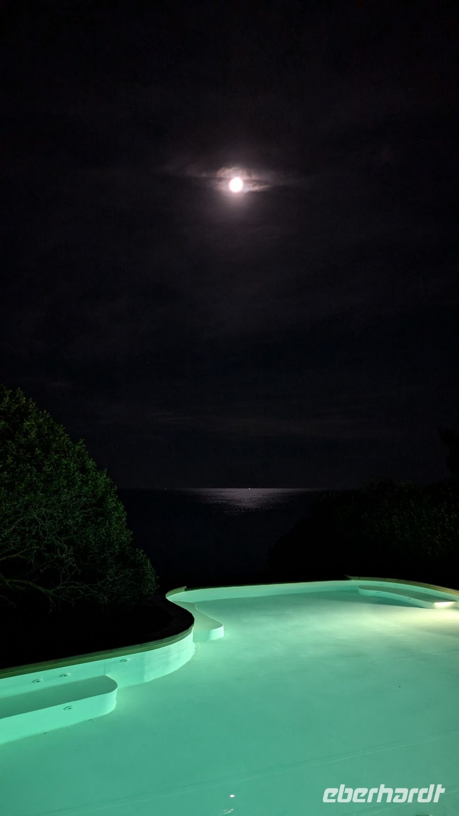 Es ist schon immer eine unbeschreibliche Stimmung am Morgen, so am Übergang von der Nacht in den Tag, wenn man hinuntergeht zum Meer und legt sich in die warmen Wellen. Über einem das Sternbild des Orion und im Osten beginnt die Dämmerung.