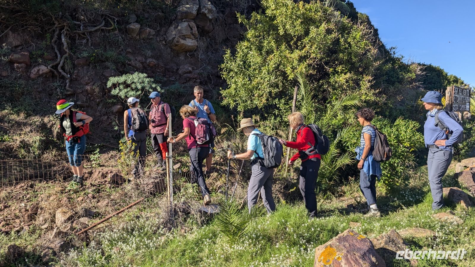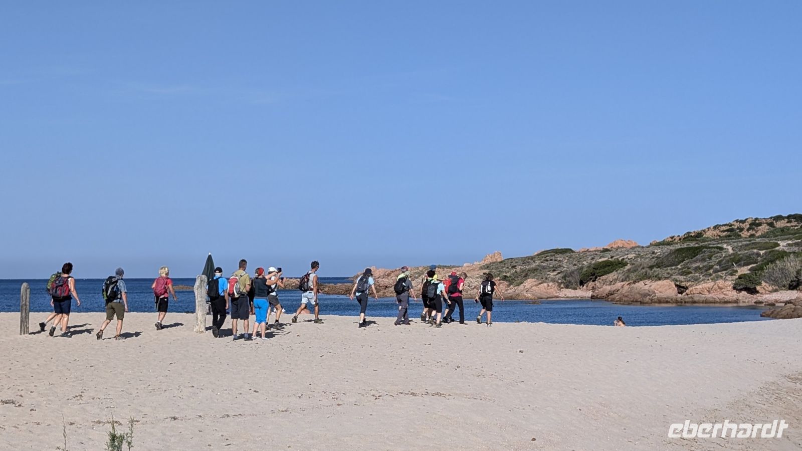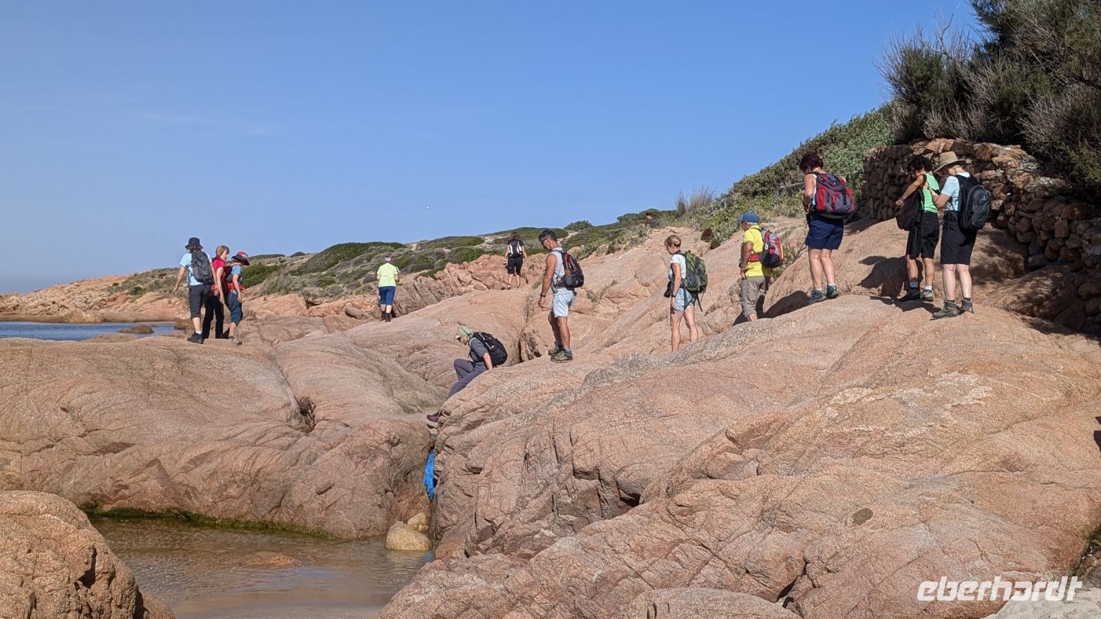 2 Gäste haben sich abgemeldet und genossen herrliche Stunden am Strand während der Rest der Gruppe sich doch auf eine interessante Wanderung begab und an den Felsen entlang, über staubige Sandwege und durch Pinienwälder bis zum Strand von Canneddi vorkämpfte.