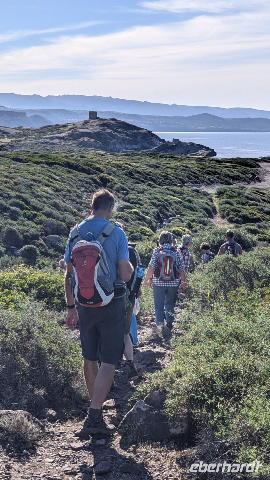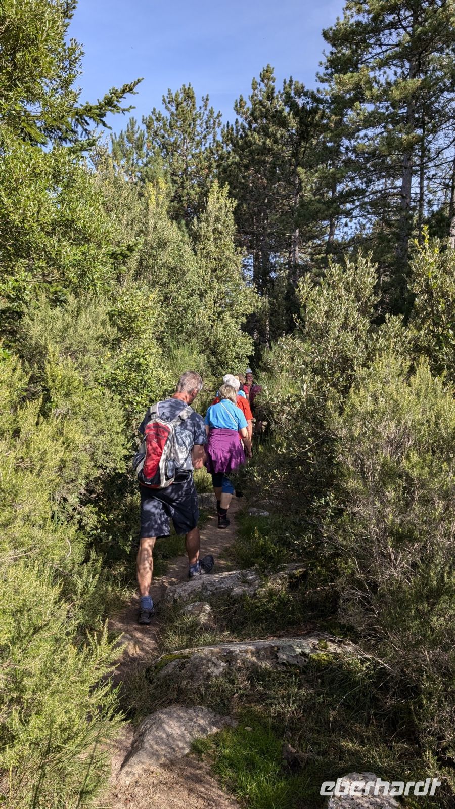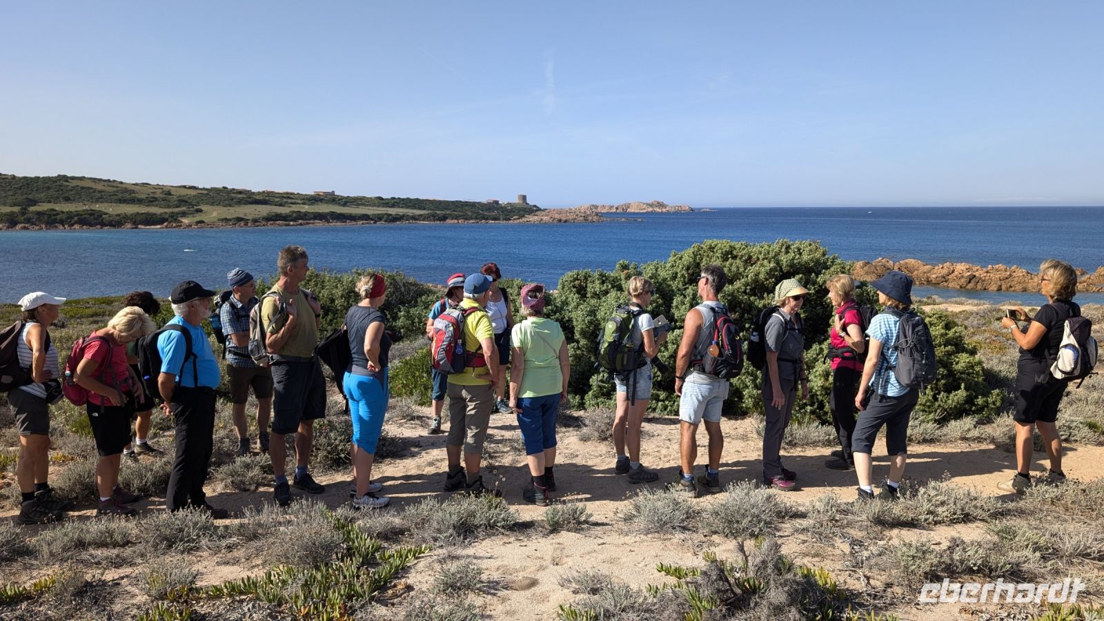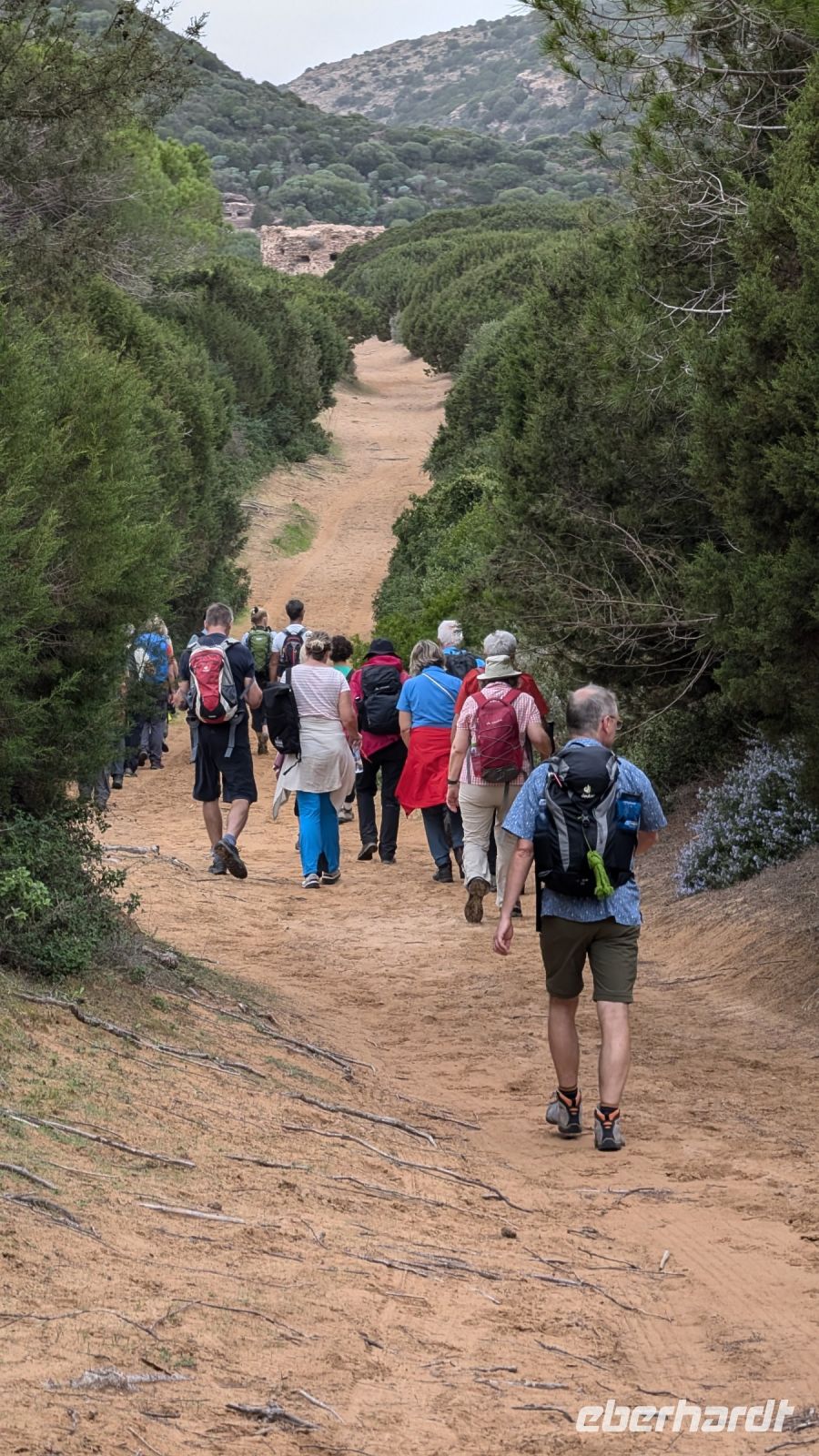 2 Gäste haben sich abgemeldet und genossen herrliche Stunden am Strand während der Rest der Gruppe sich doch auf eine interessante Wanderung begab und an den Felsen entlang, über staubige Sandwege und durch Pinienwälder bis zum Strand von Canneddi vorkämpfte.
