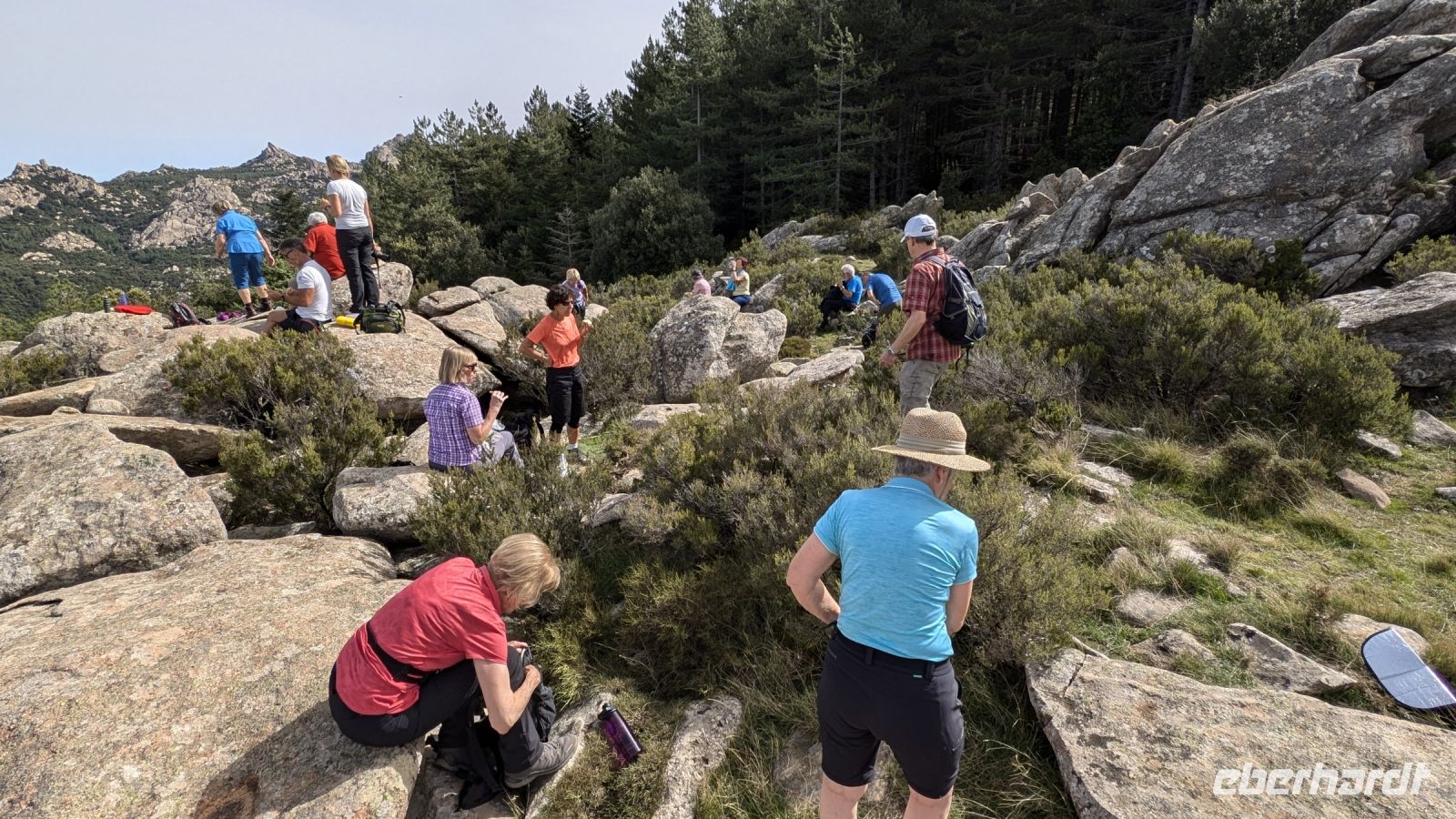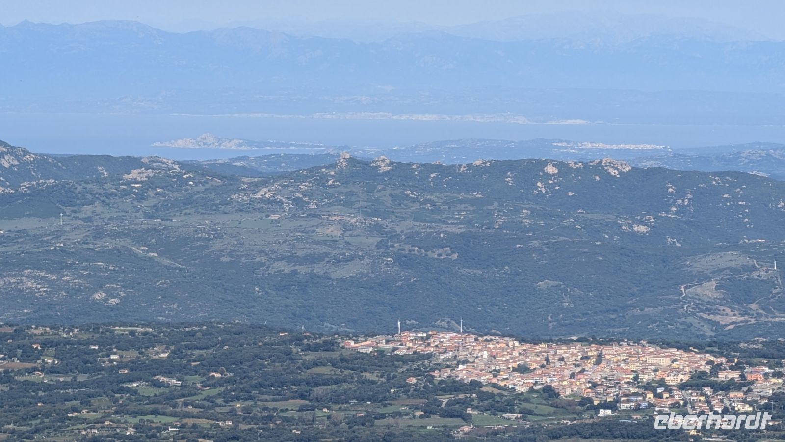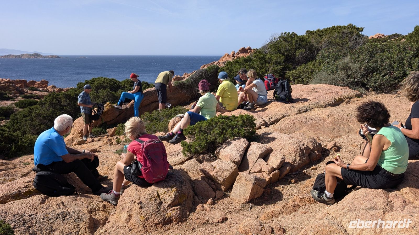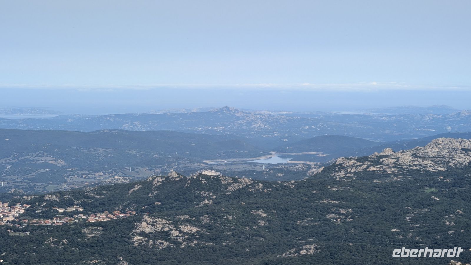 Bestens geeignet zur Rast und diesmal mit einem sagenhaften Ausblick. Das Wetter war so klar, dass man nicht nur Korsika sehen, sondern dort sogar noch die Berge im Hinterland erkennen konnte. Ebenso ein Blick an die Costa Smeralda, jenem Soceitydomizil, das in den 1960iger Jahren durch Aga Kahn aufgebaut wurde.