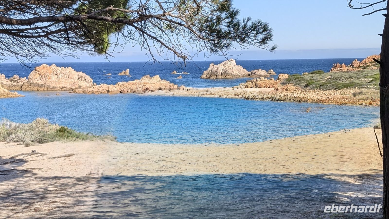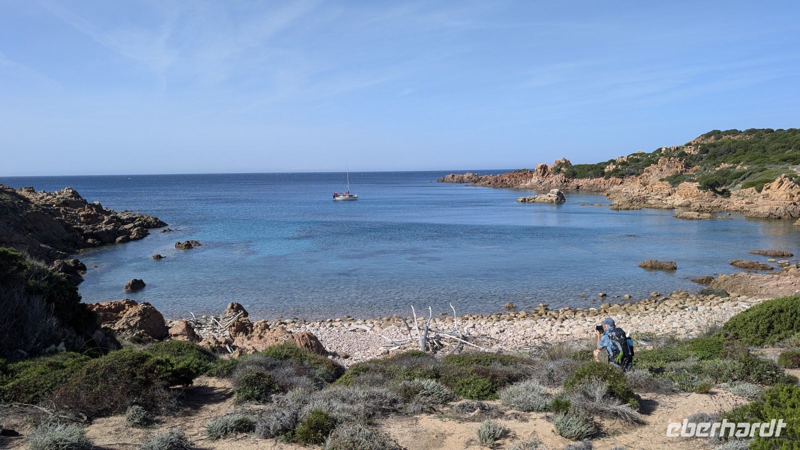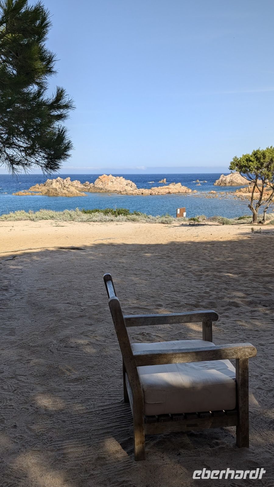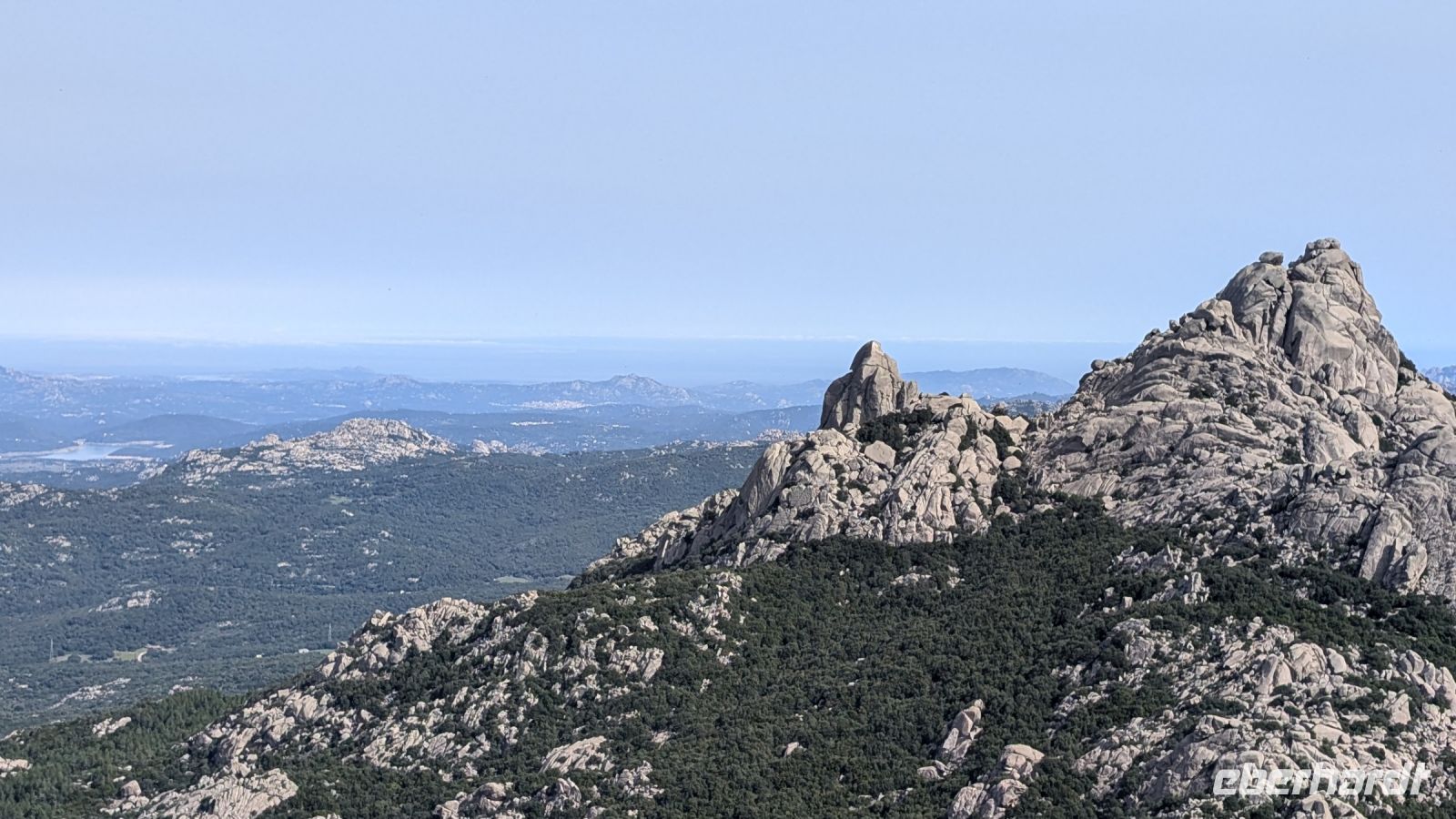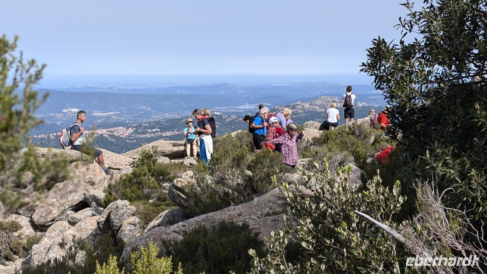 Bestens geeignet zur Rast und diesmal mit einem sagenhaften Ausblick. Das Wetter war so klar, dass man nicht nur Korsika sehen, sondern dort sogar noch die Berge im Hinterland erkennen konnte. Ebenso ein Blick an die Costa Smeralda, jenem Soceitydomizil, das in den 1960iger Jahren durch Aga Kahn aufgebaut wurde.