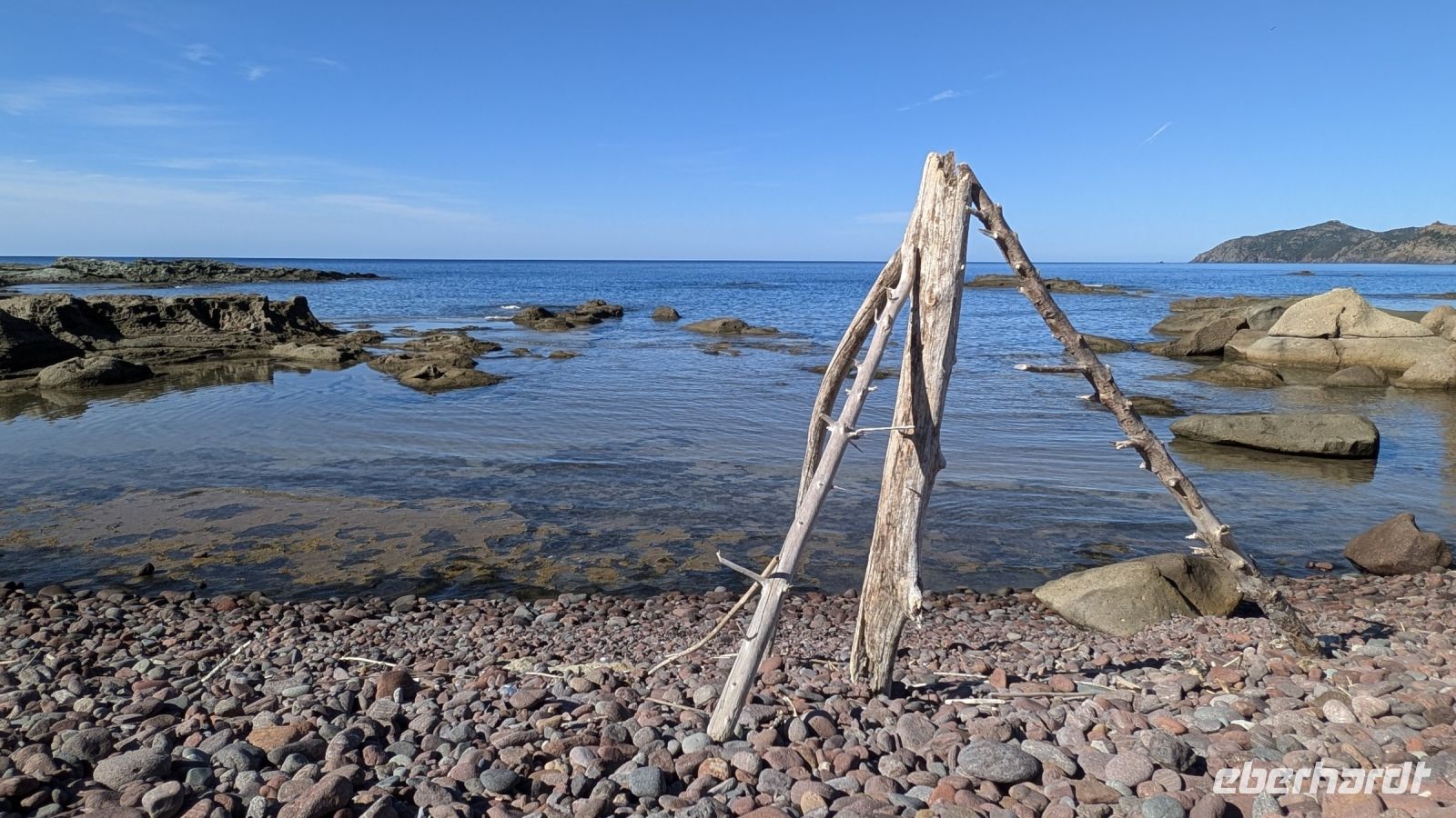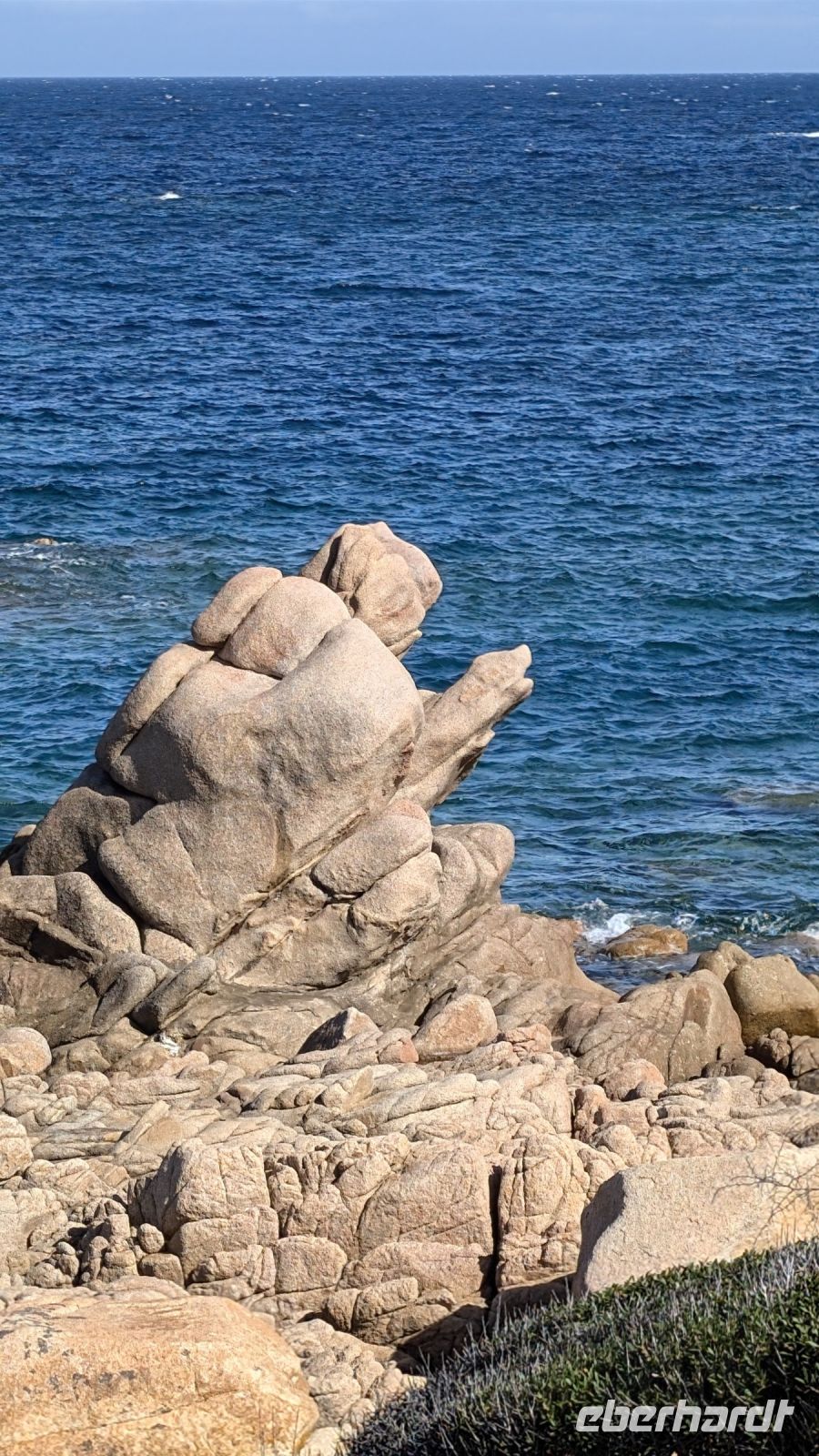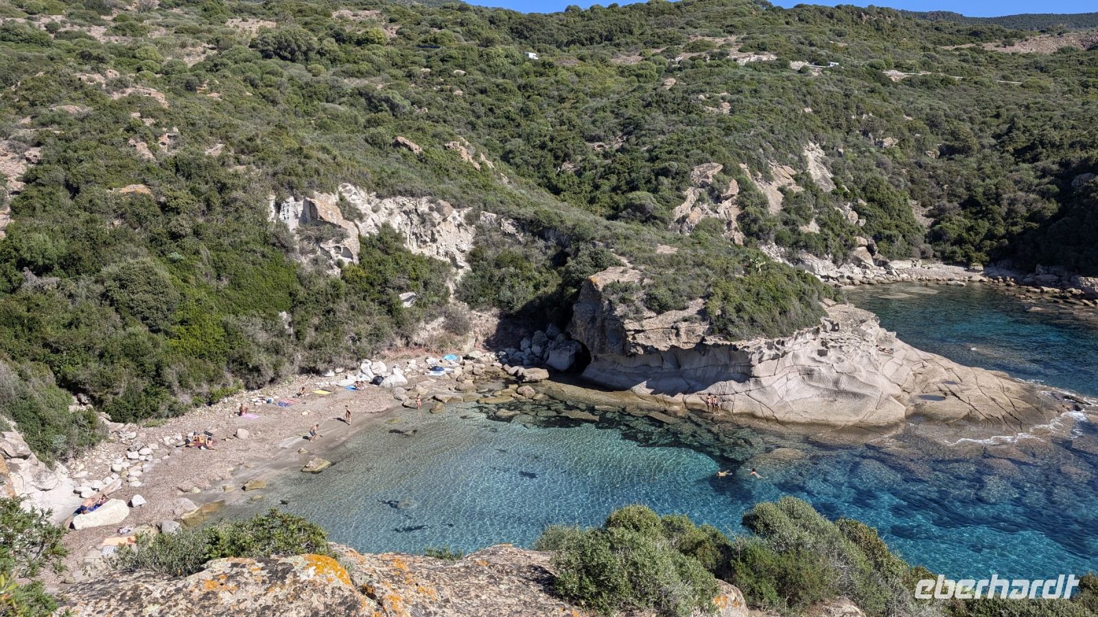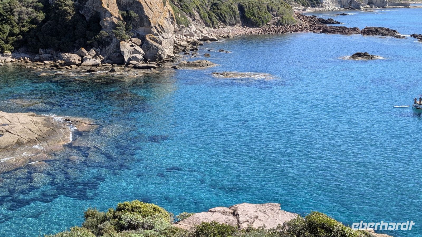 Bestens geeignet zur Rast und diesmal mit einem sagenhaften Ausblick. Das Wetter war so klar, dass man nicht nur Korsika sehen, sondern dort sogar noch die Berge im Hinterland erkennen konnte. Ebenso ein Blick an die Costa Smeralda, jenem Soceitydomizil, das in den 1960iger Jahren durch Aga Kahn aufgebaut wurde.