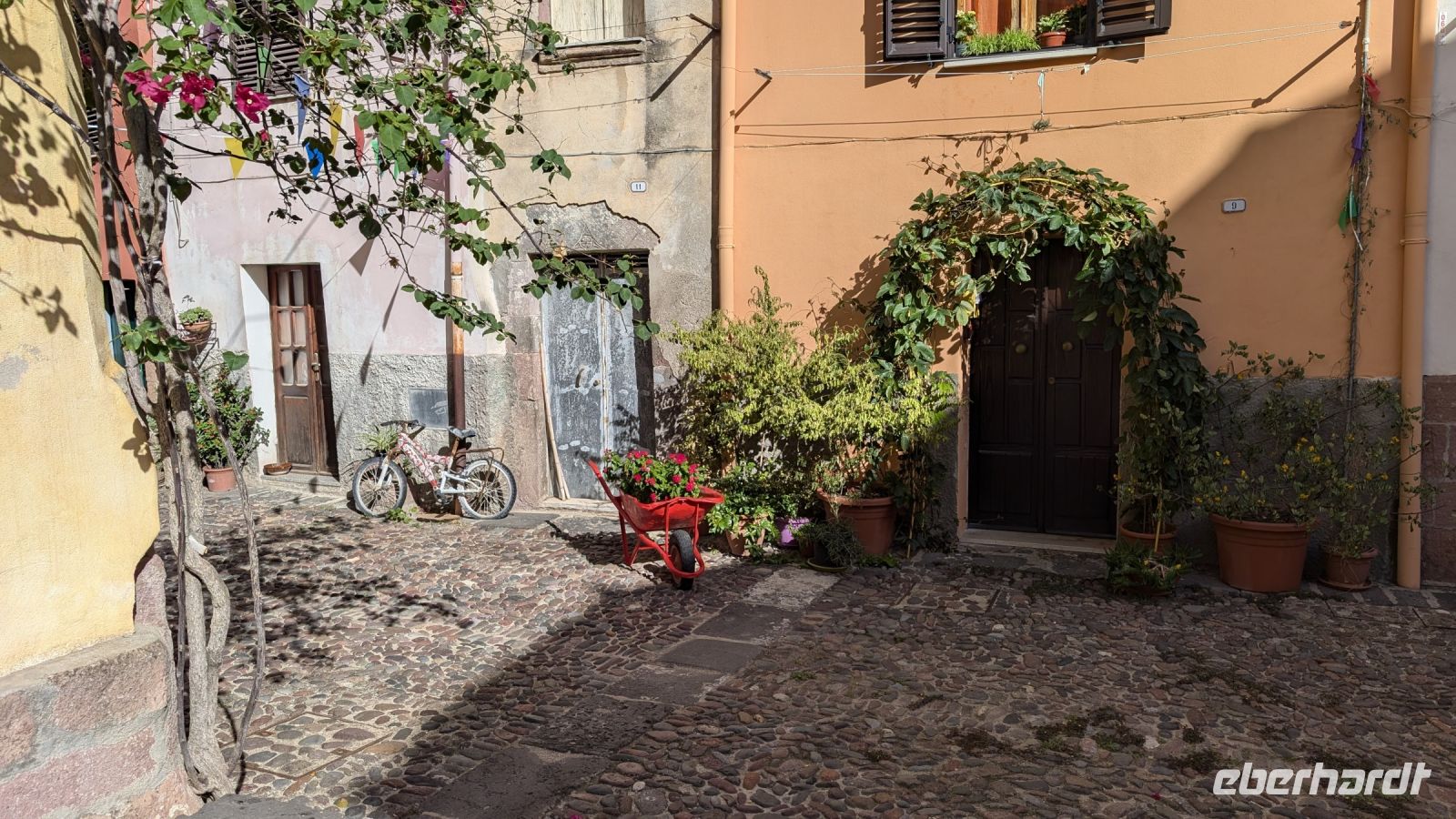 Die Rede ist von Bosa, wo wir unser Mittag hatten und Fiammetta uns in die geheimen Winkel der Stadt führte. Wunderbare Innenhöfe, manchmal etwas kitschig gestaltet, aber immer bunt und einladend. Eine kleine verträumte Märchenwelt.