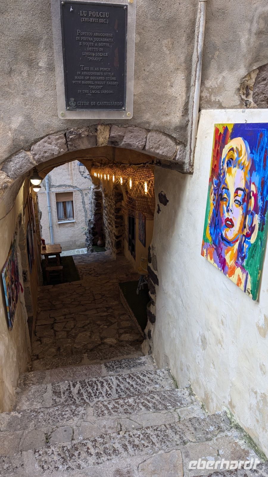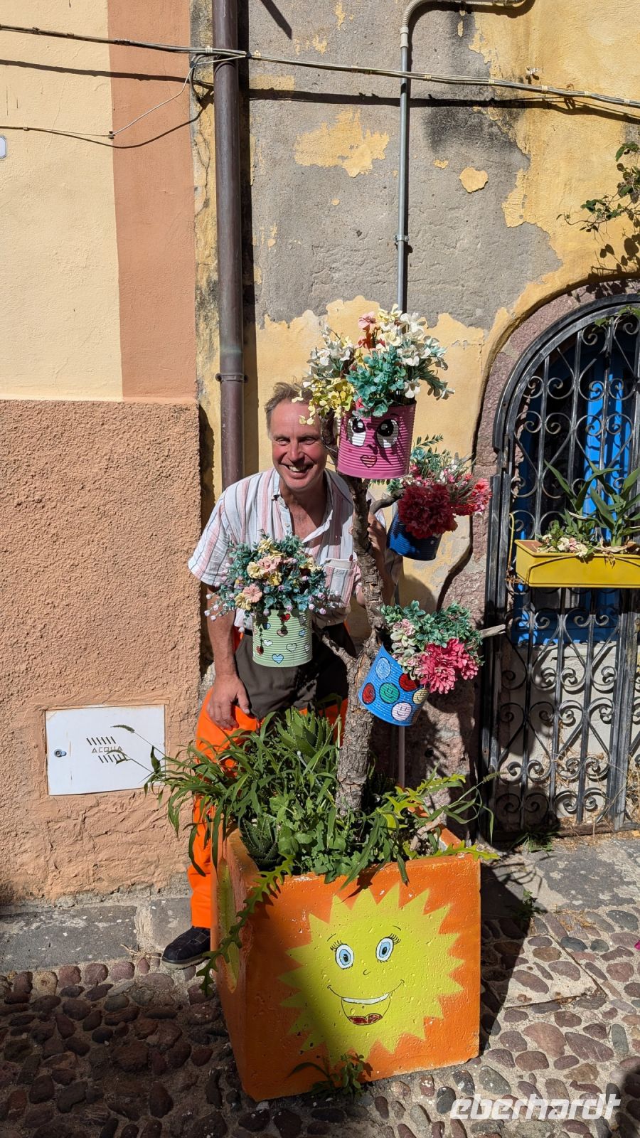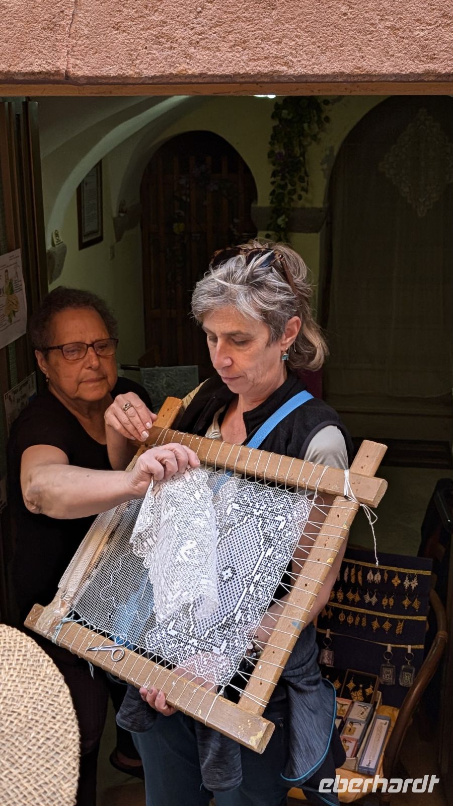 Die Altstadt eingerahmt von einer majestätischen Stadtmauer, erkundeten wir auf gepflasterten Wegen den Campanile, die Kathedrale St. Antonia Abate, das Haus der letzten Richterin Eleonore Arborea, das Rathaus, in dem einst spanische Eroberer und Genuesen die Geschicke der Stadt prägten und die Festung selbst. Weltbekannt ist Castelsardo für seine Flechtkunst.