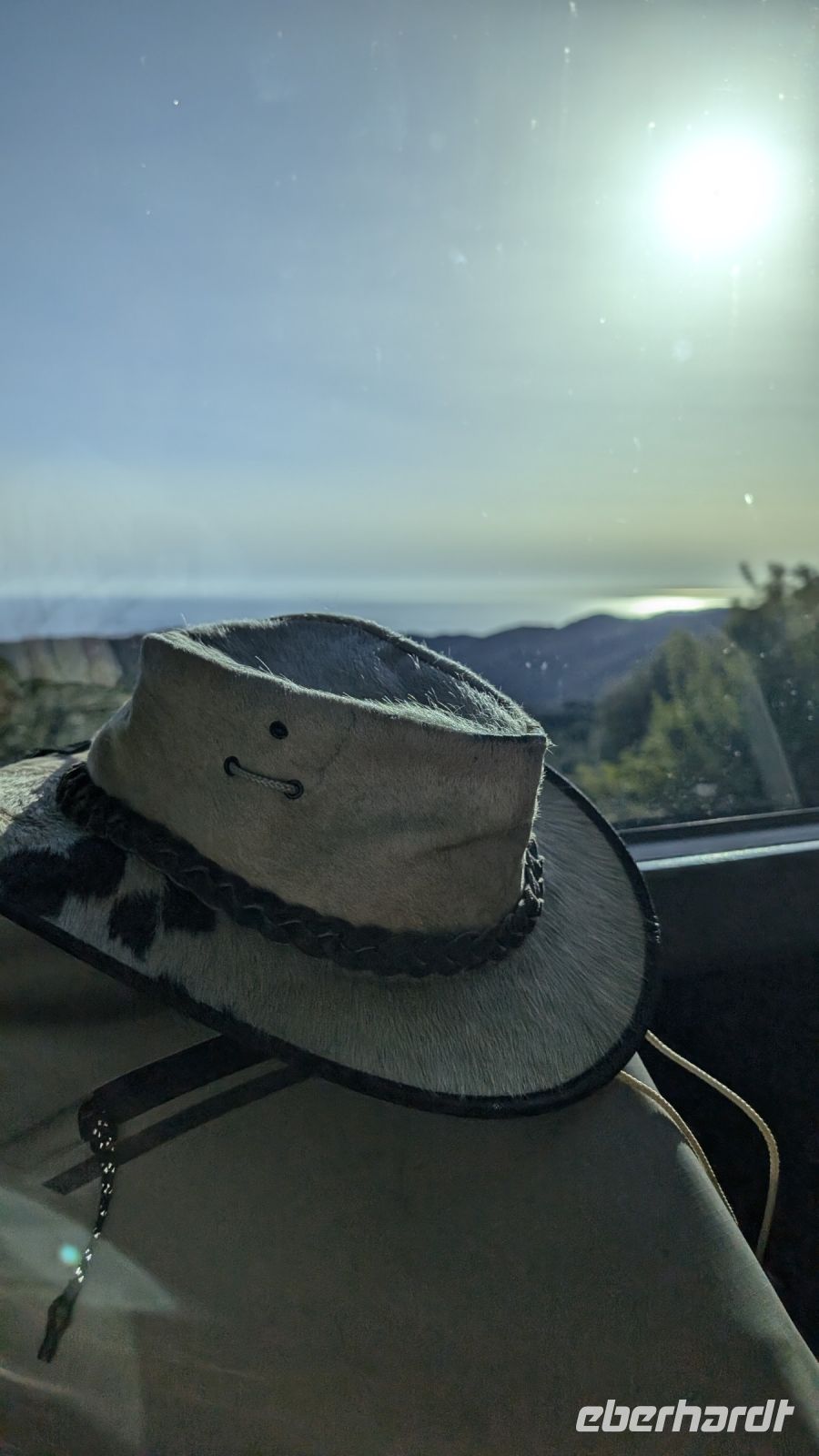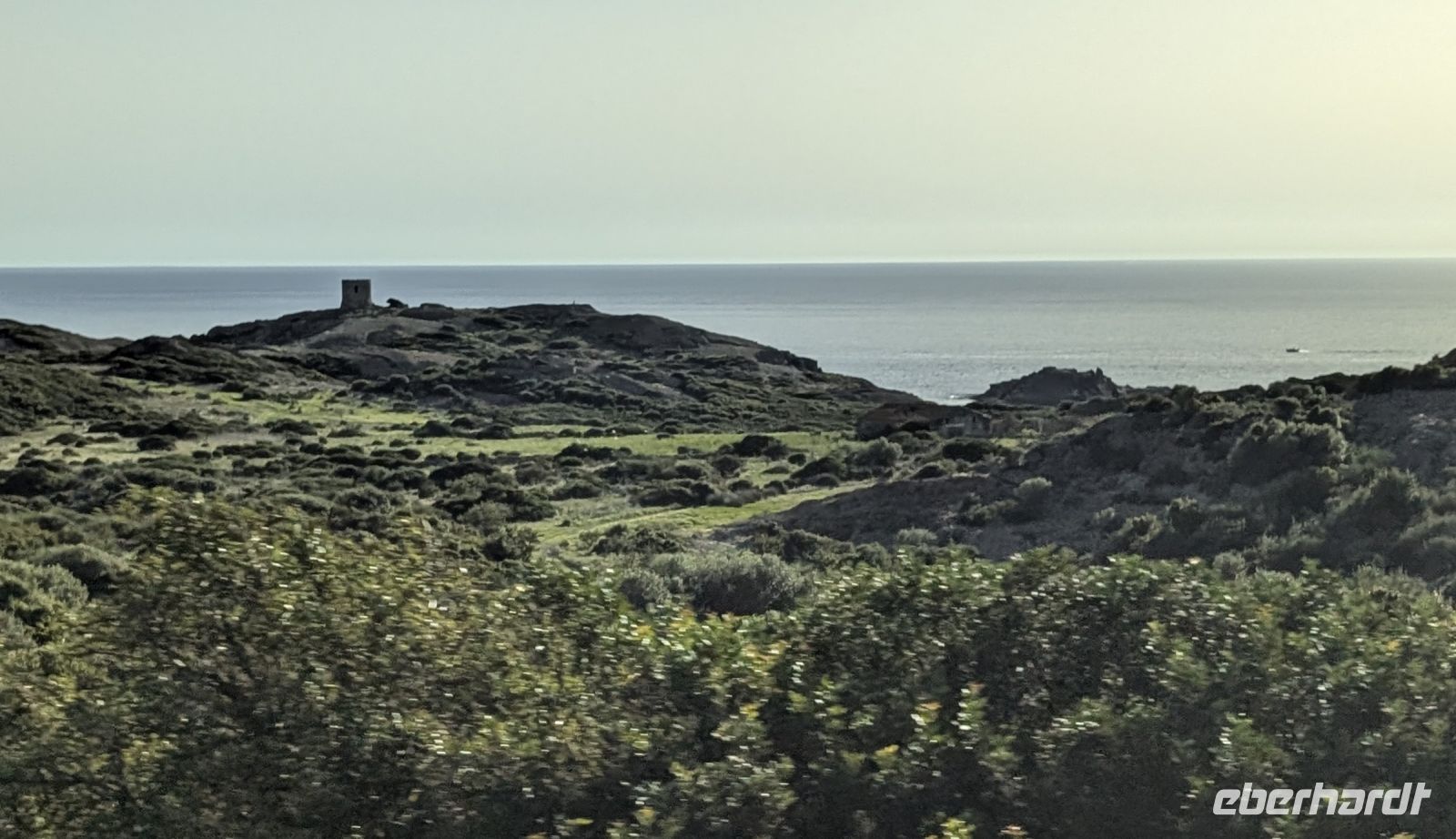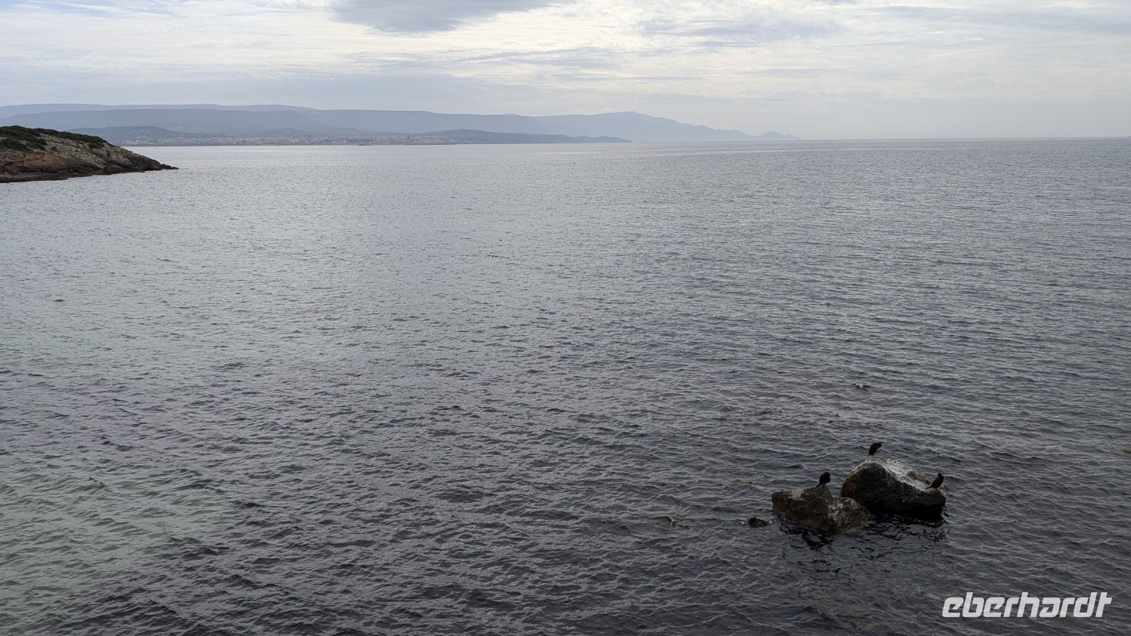 Ein spezielles Wetterphänomen erlaubte uns einen seltenen Blick vom Capo Cacca bis hinunter zur Küste der Region Calgliari mit der Insel Mal di Vendre, was übersetzt „böser Wind“ bedeutet.