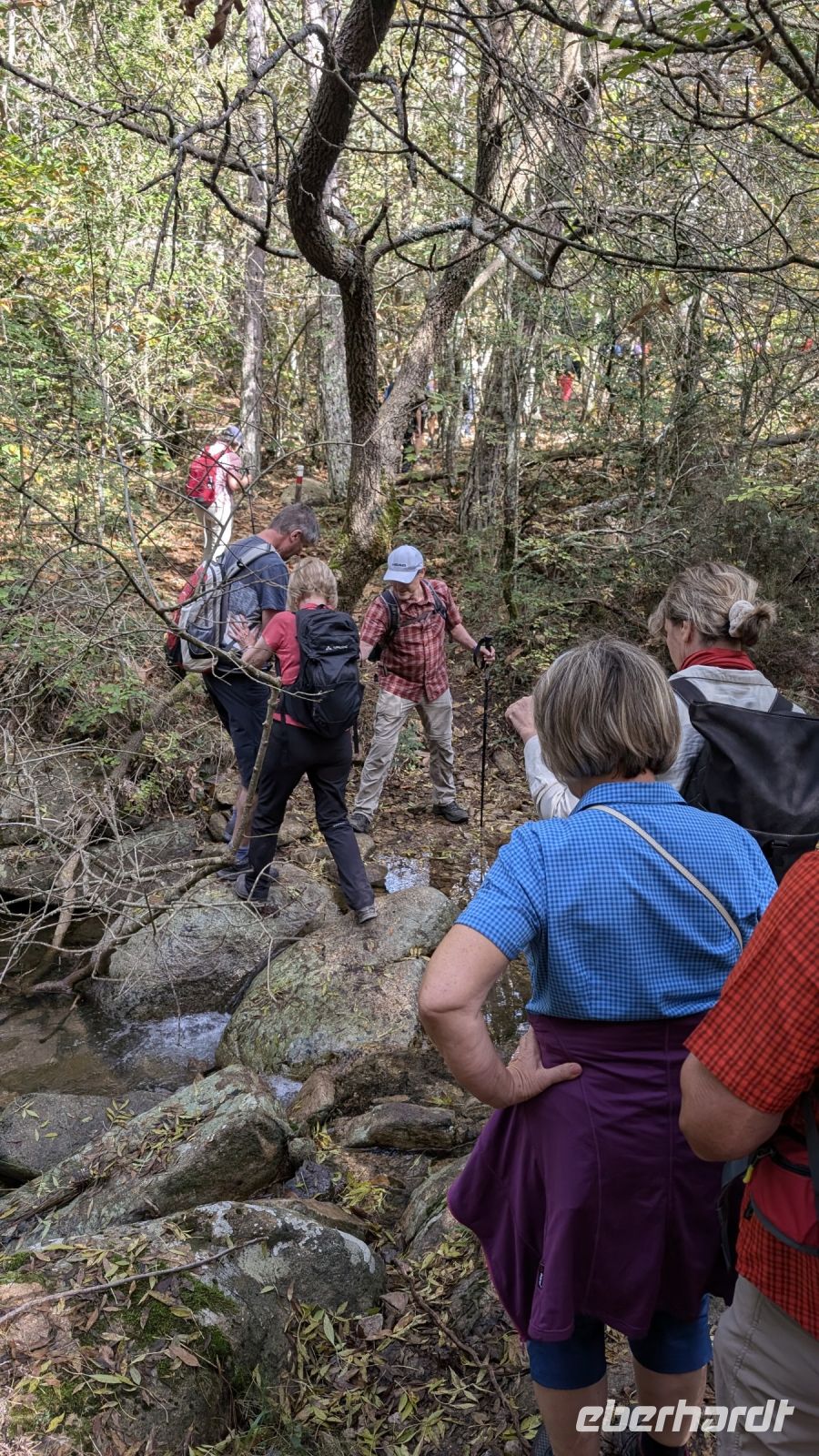 Wunderbares Herbstwetter, einfach ein goldener Oktobertag. Die Kastanienwälder leuchteten golden. Pilze schossen aus dem Boden, sogar der kleine Bach führte diesmal Wasser und bei seiner der Überquerung half man sich gegenseitig. Der Weg war schattig mit leichtem Anstieg. Immer wieder wurden die Handys gezuckt um irgendwelche Pflanzen zu bestimmen. So entdeckte man hier die korsische Pfingstrose.