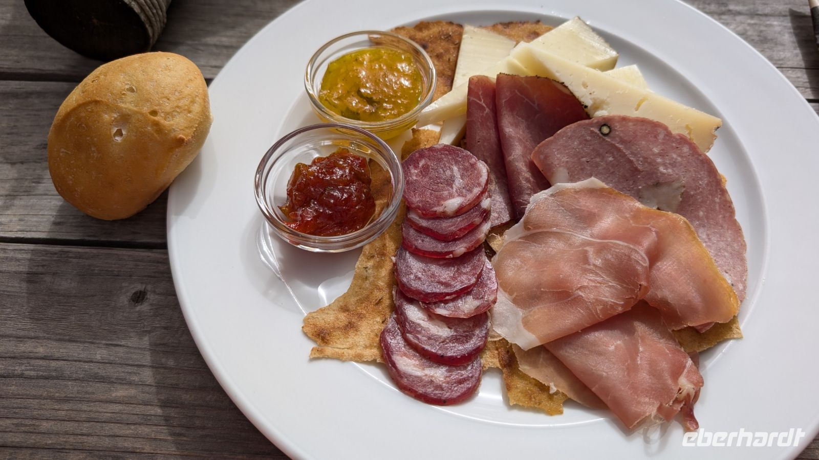 Kalte und warme Gaumenfreuden, freundlich serviert mit Cannonau, dazu der Duft des Holzfeuers und der Spanferkel - genau die richtige Einstimmung für einen wunderbaren Wanderurlaub.